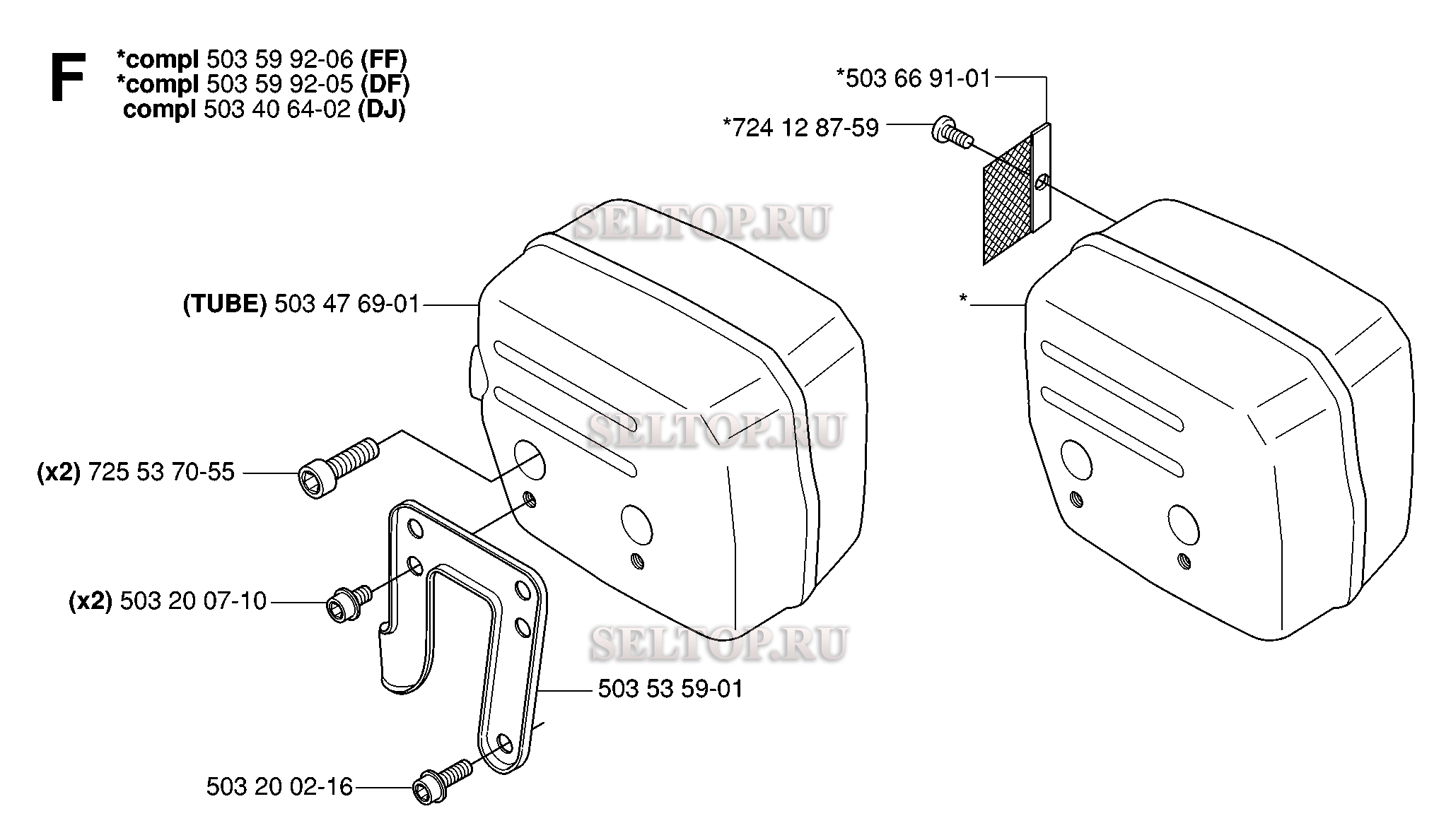 Глушитель для бензопилы Husqvarna 268 (с 2007-01), взрыв-схема: