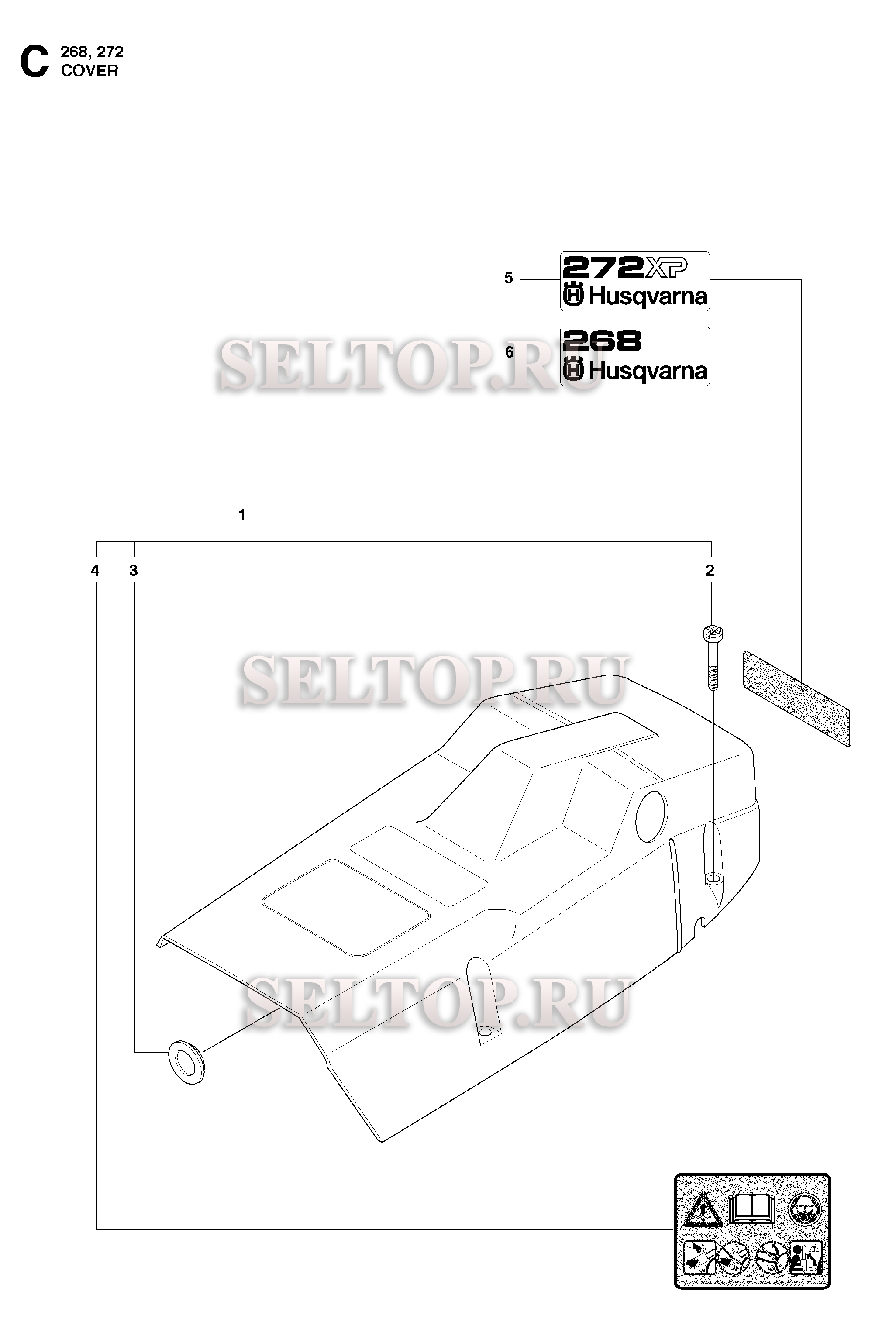 Крышка цилиндра для бензопилы Husqvarna 268 (с 2009-04), взрыв-схема: