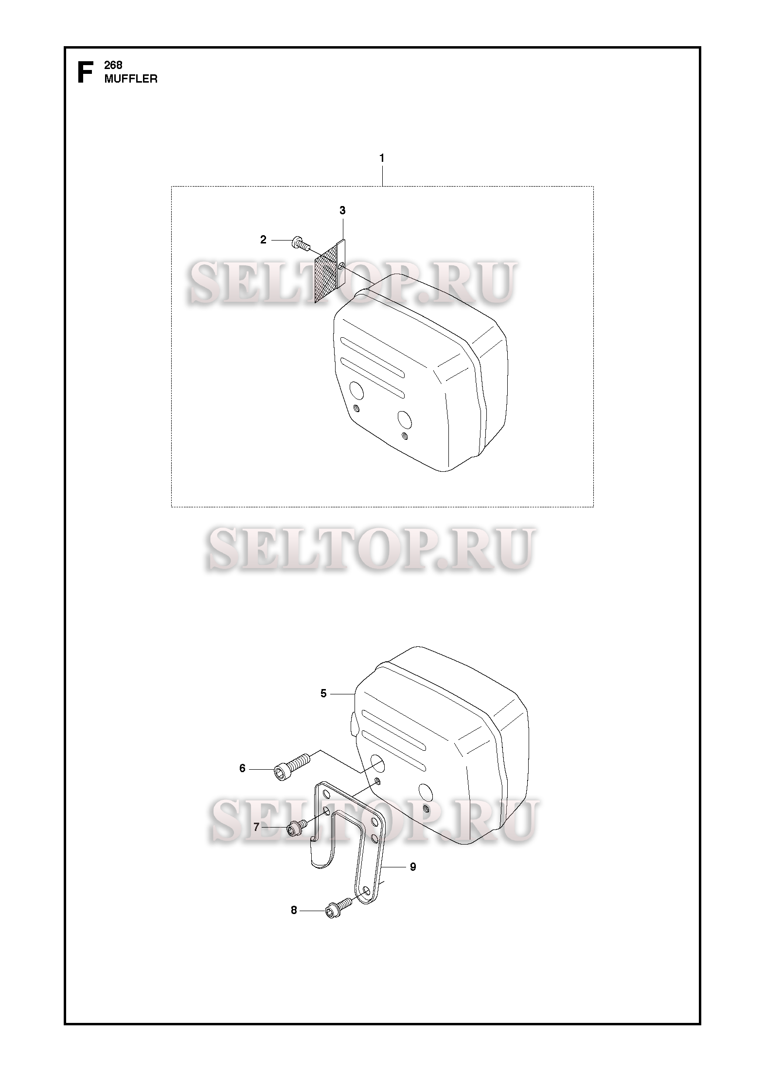 Глушитель для бензопилы Husqvarna 268 (с 2016-07), взрыв-схема: