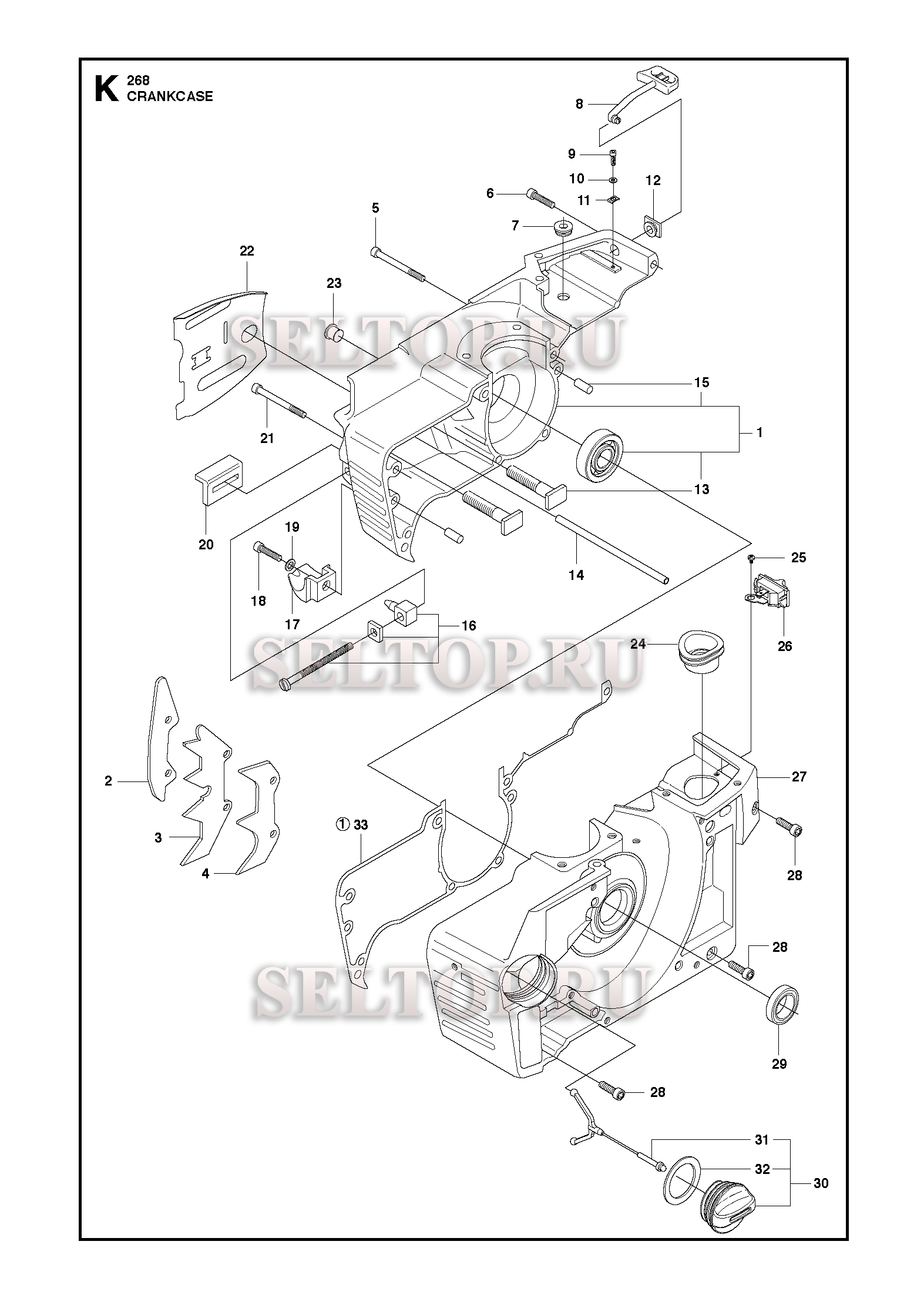 Картер для бензопилы Husqvarna 268 (с 2017-08), взрыв-схема:
