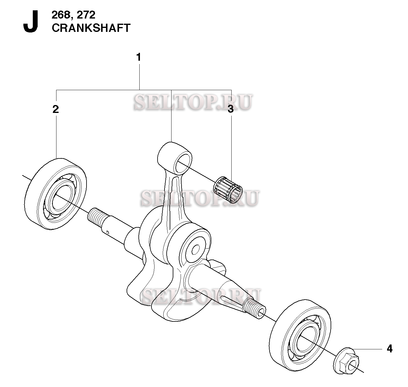 Коленвал для бензопилы Husqvarna 272 XP (с 2009-04), взрыв-схема: