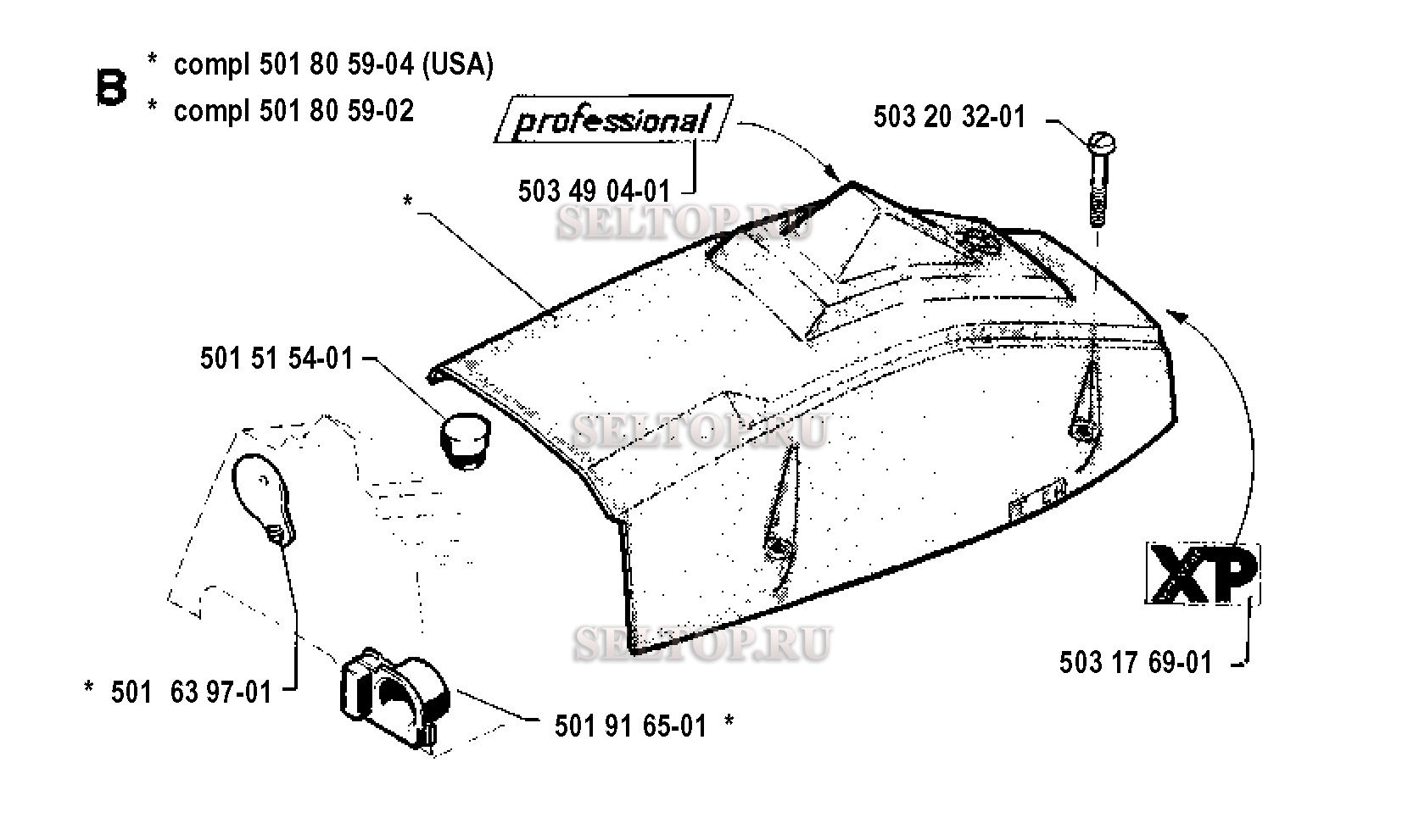 Кожух для бензопилы Husqvarna 281 (с 1990-01), взрыв-схема: