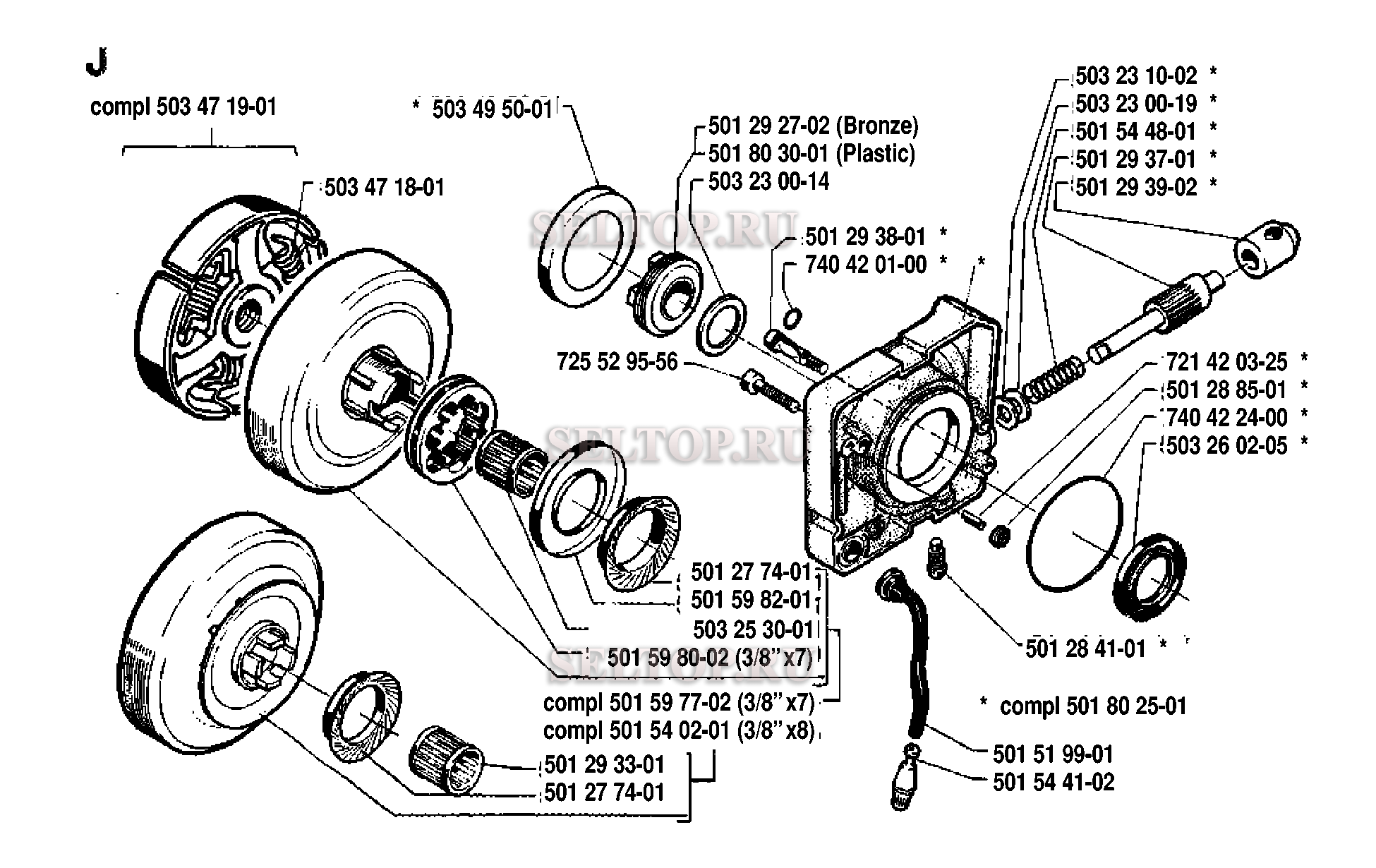 Сцепление, масляный насос для бензопилы Husqvarna 288 (с 1991-04), взрыв-схема: