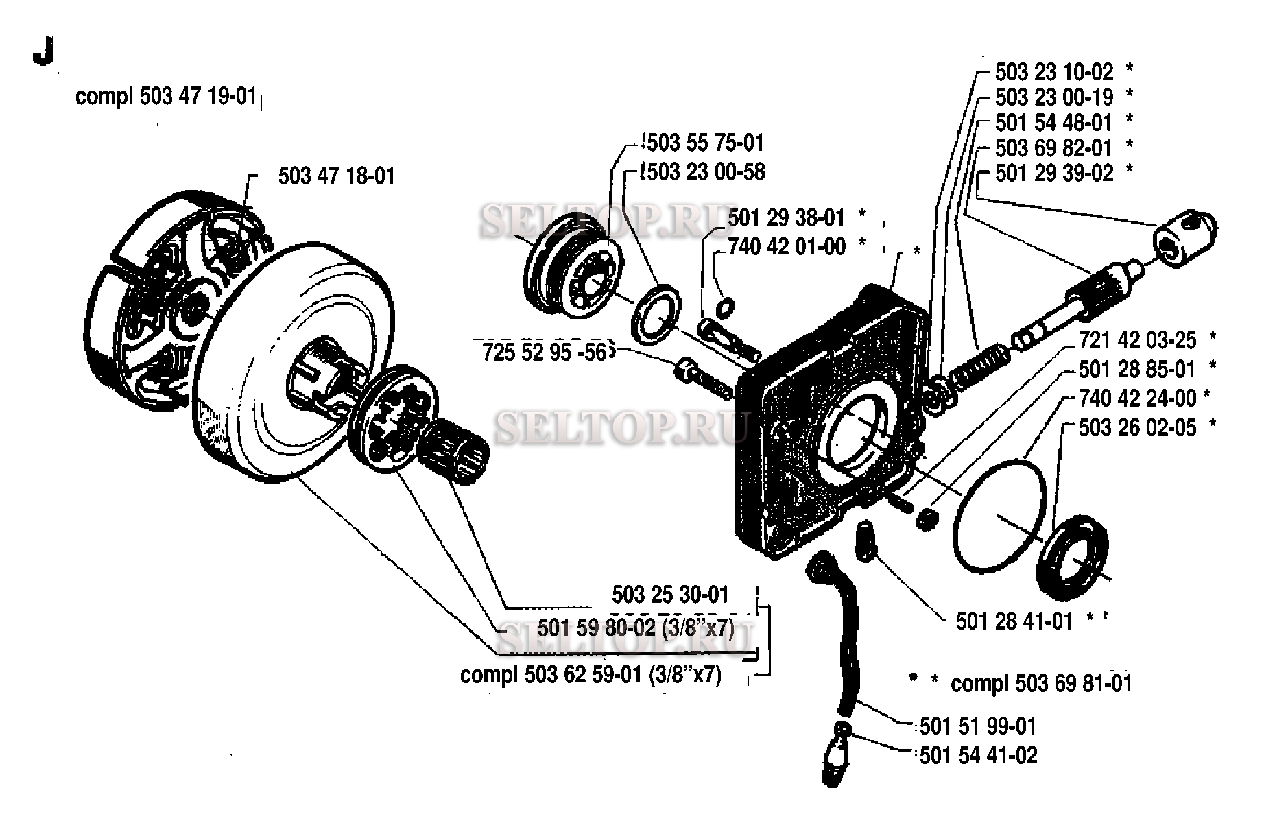 Сцепление, масляный насос для бензопилы Husqvarna 288 (с 1993-09), взрыв-схема:
