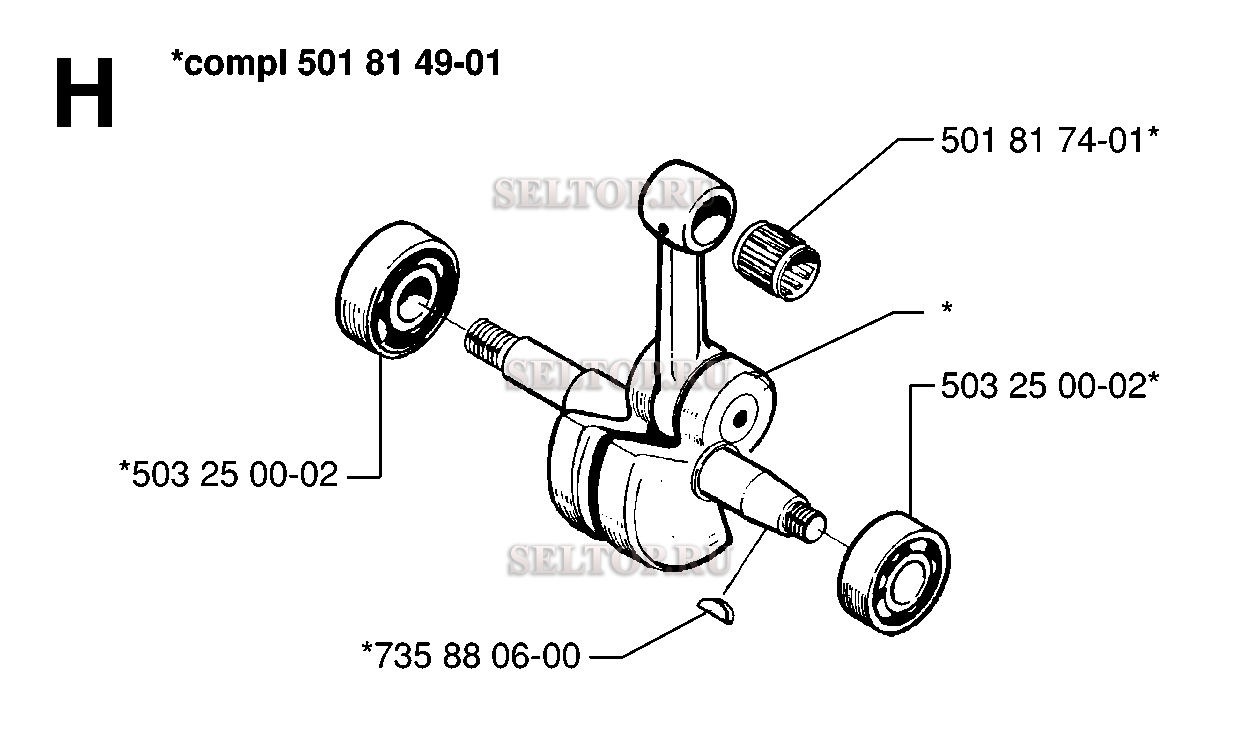 Коленвал для бензопилы Husqvarna 288 (с 1997-12), взрыв-схема:
