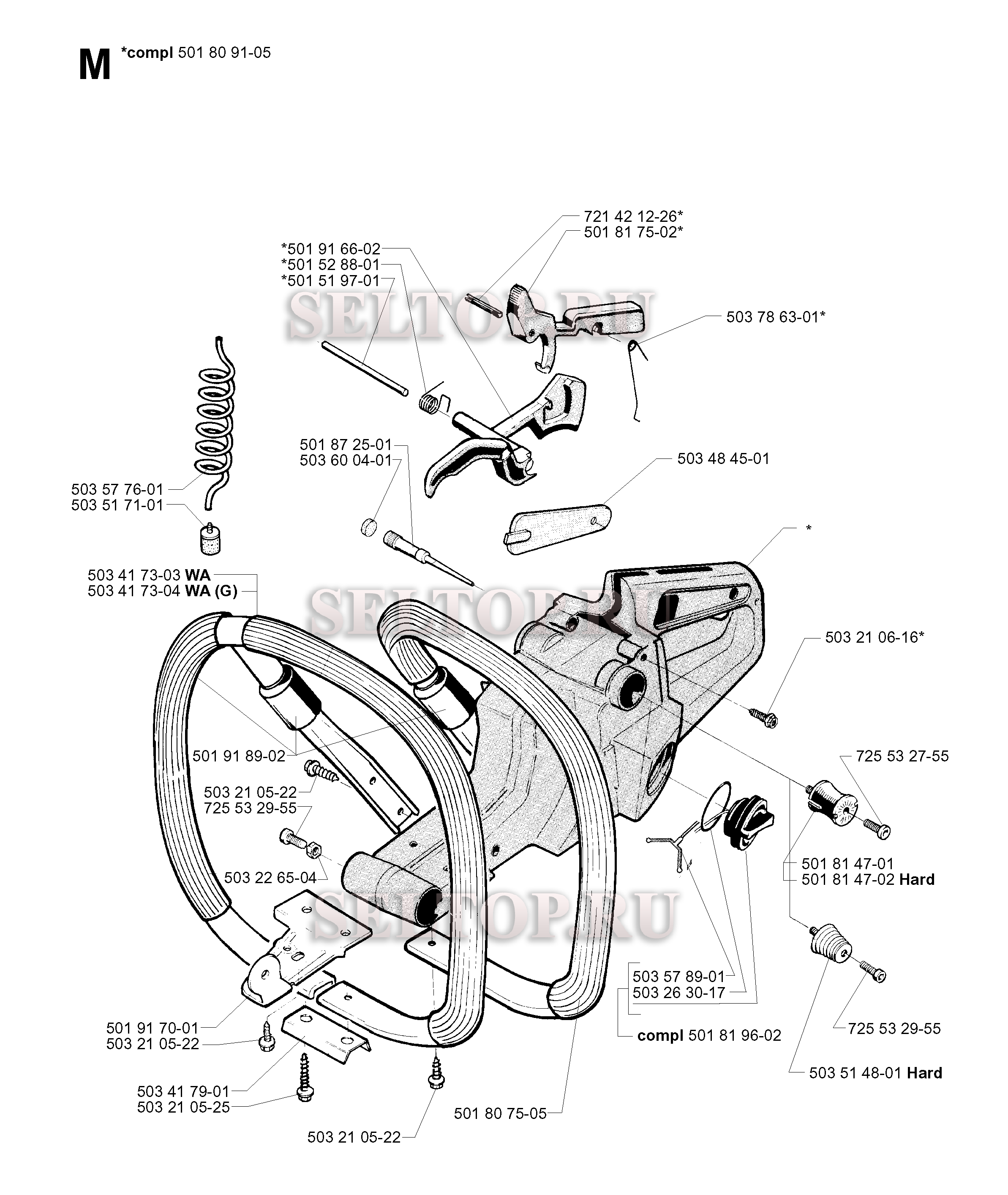 Топливный бак, ручка для бензопилы Husqvarna 288 (с 2001-10), взрыв-схема: