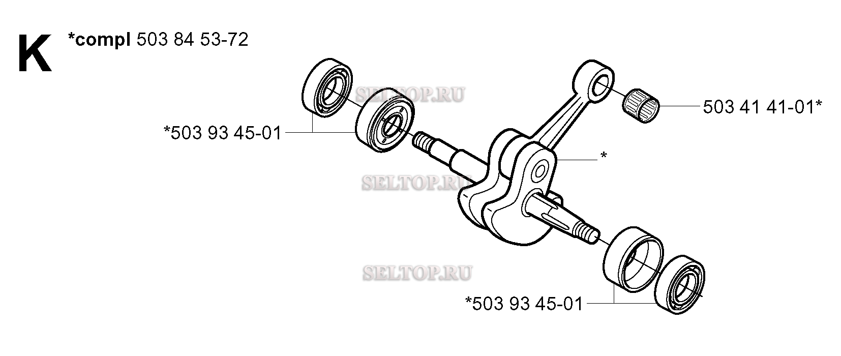 Коленвал для бензопилы Husqvarna 334 T (с 2003-11), взрыв-схема: