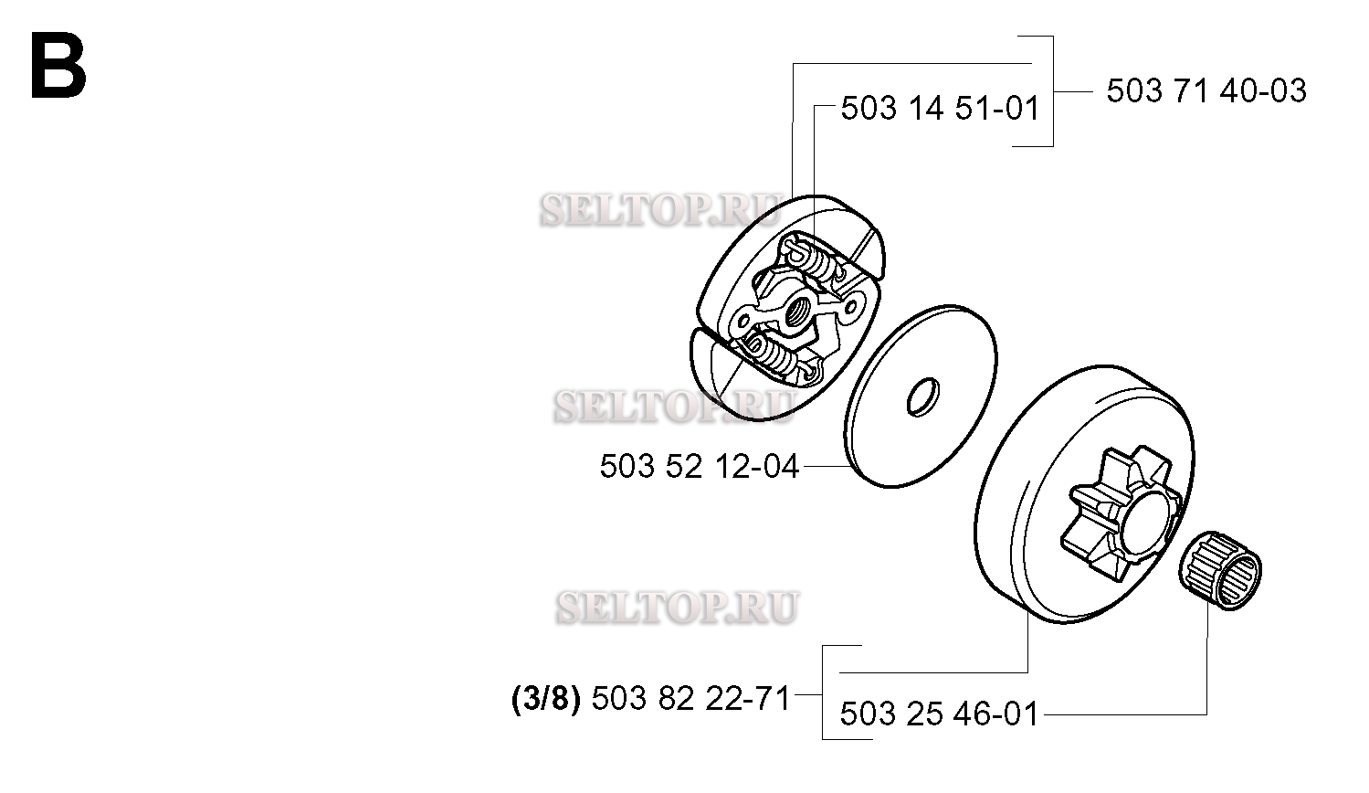 Сцепление для бензопилы Husqvarna 334 T (с 2003-11), взрыв-схема: