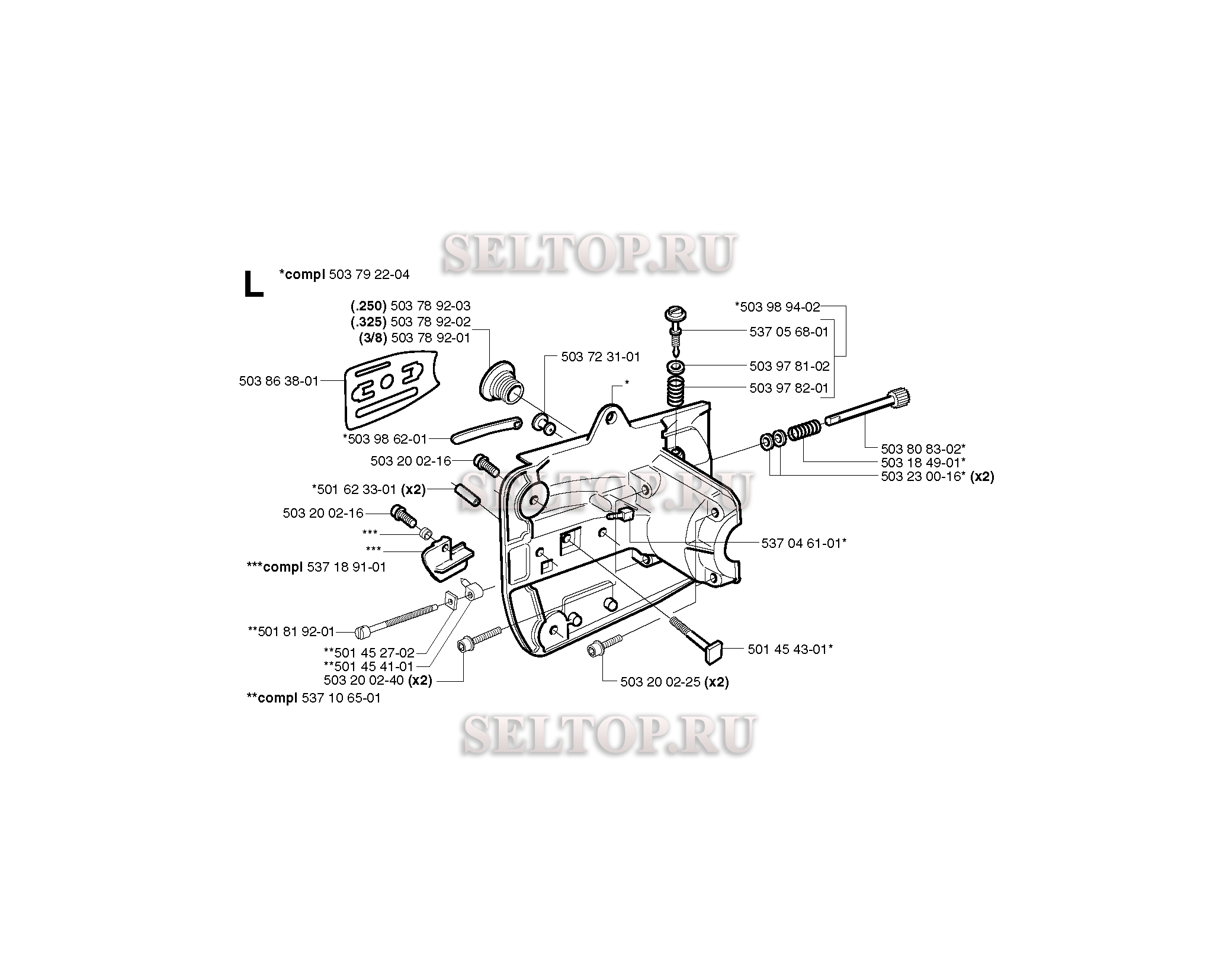 Картер для бензопилы Husqvarna 336 (с 2004-01), взрыв-схема: