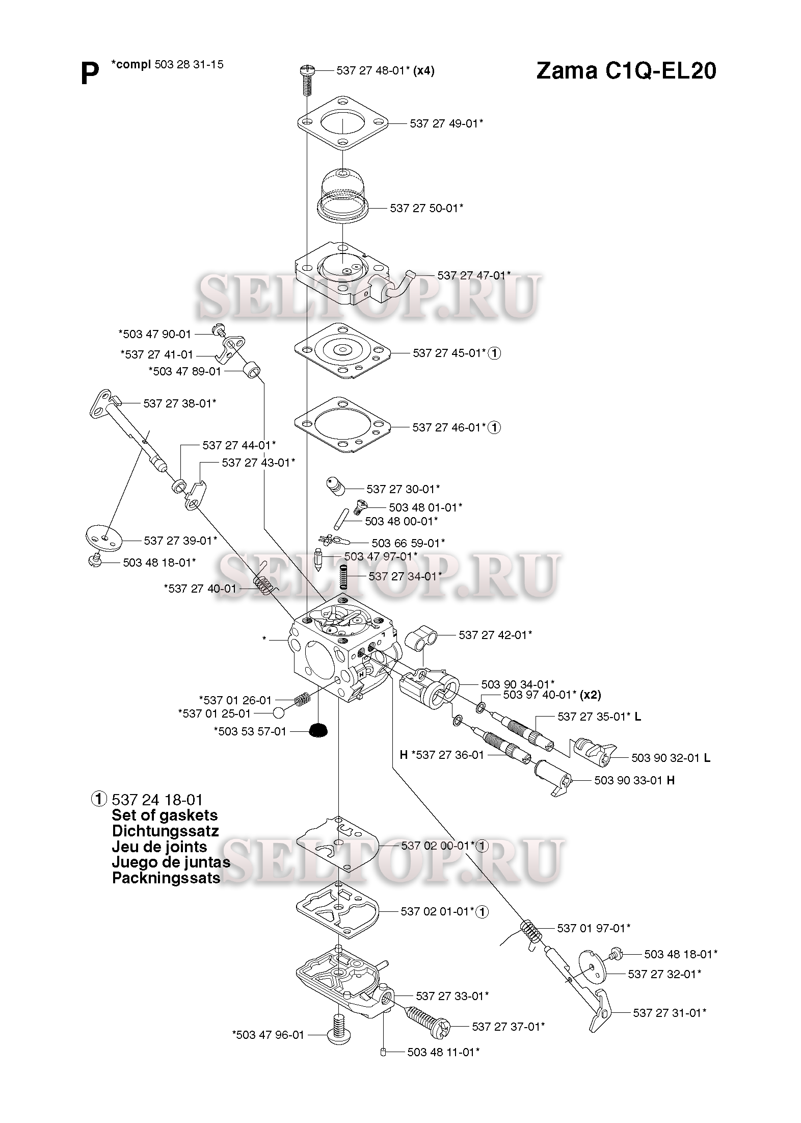 Запчасти карбюратора для бензопилы Husqvarna 336 (с 2004-01), взрыв-схема: