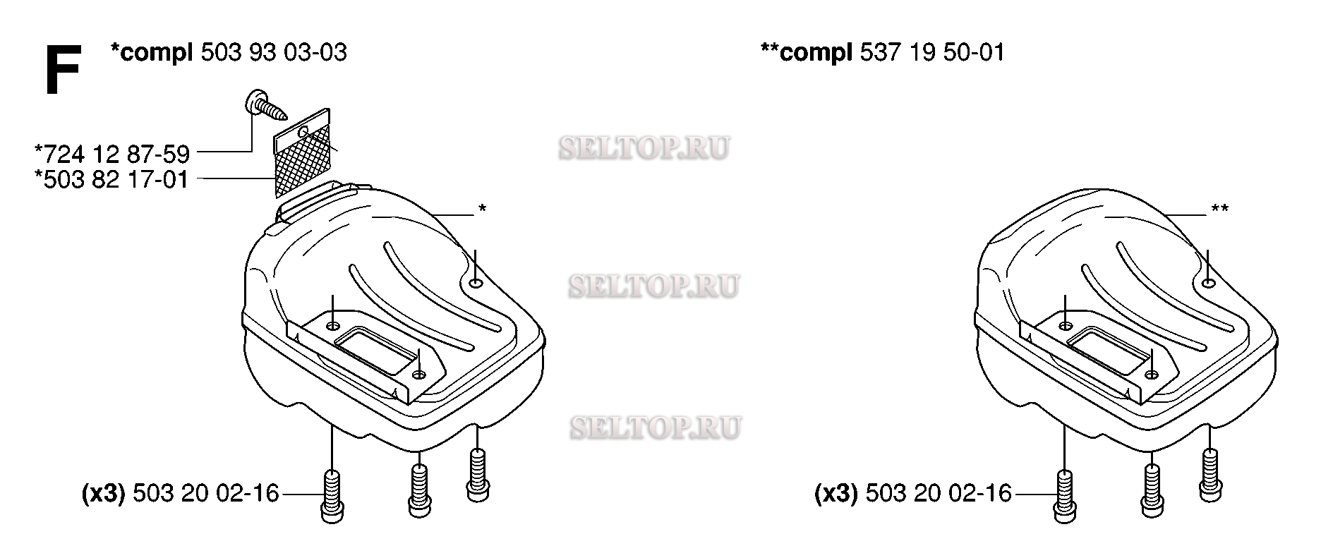 Глушитель для бензопилы Husqvarna 336 (с 2006-09), взрыв-схема: