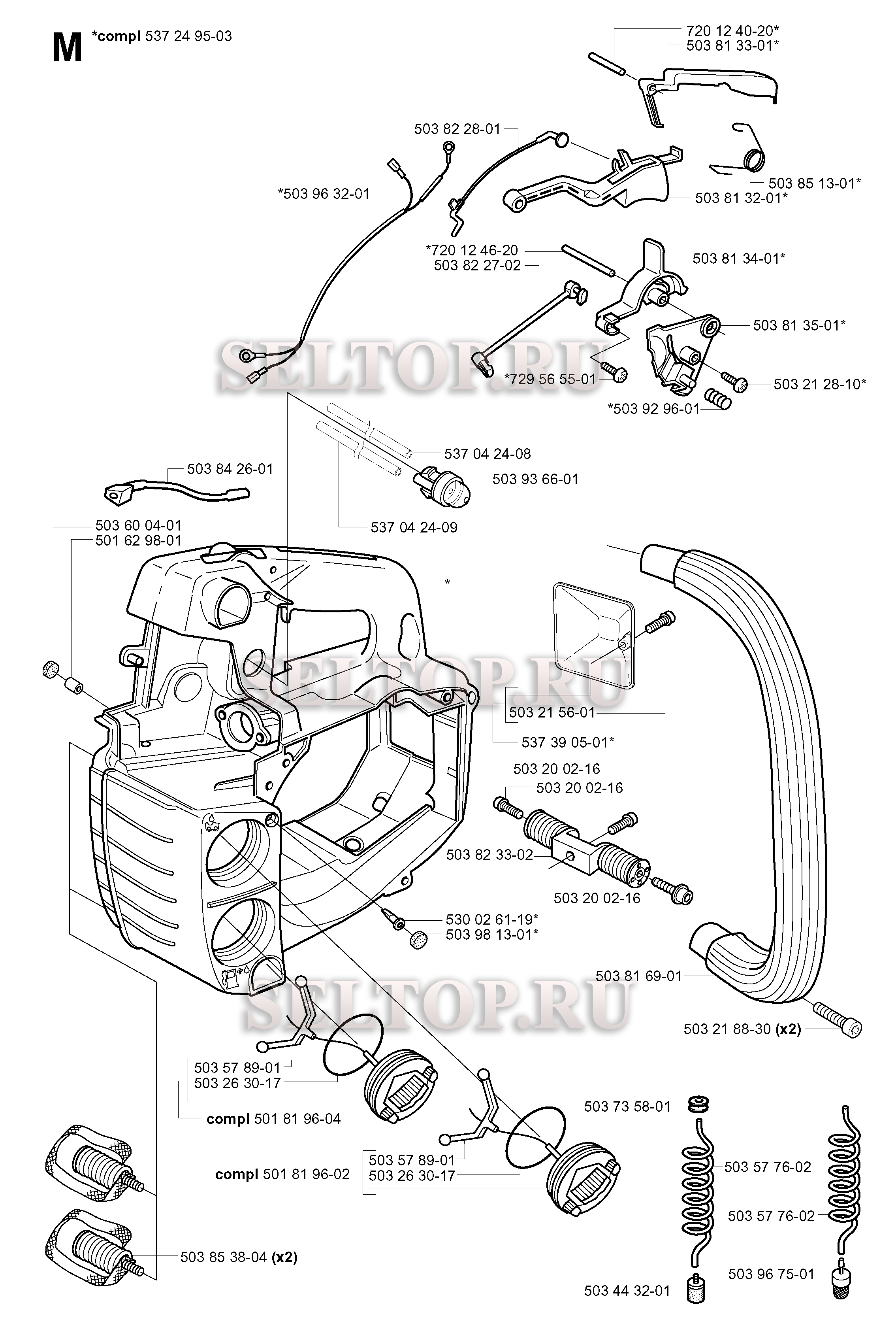 Топливный бак, ручка для бензопилы Husqvarna 338 XPT CALIFORNIA (с 2004-08)