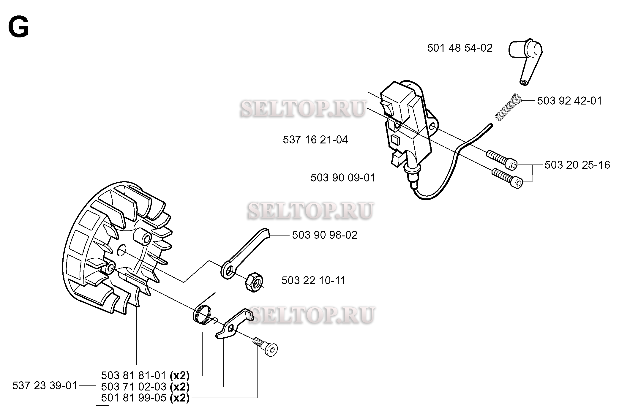 Зажигание для бензопилы Husqvarna 338 XPT CALIFORNIA (с 2005-03), взрыв-схема: