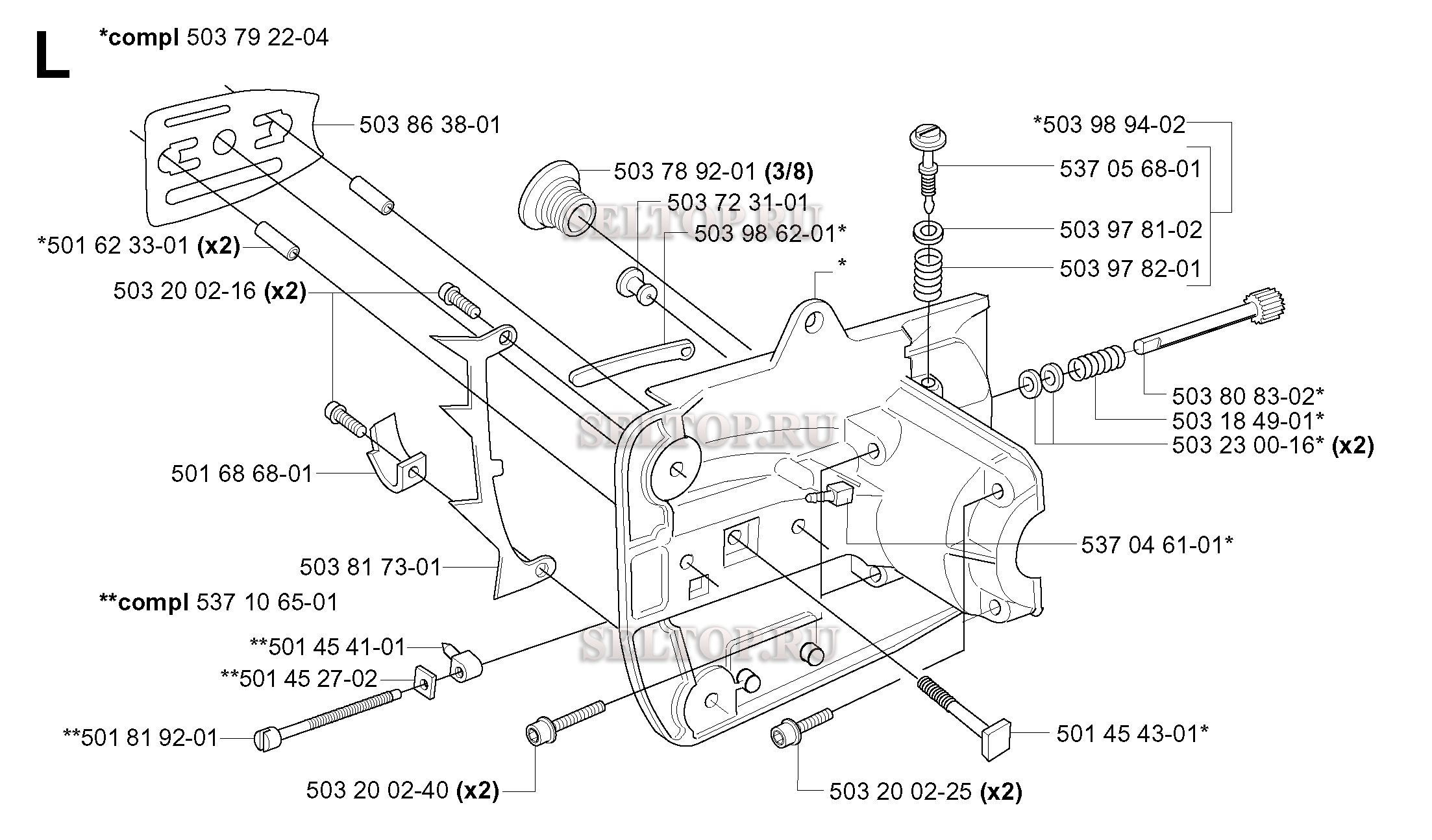 Картер для бензопилы Husqvarna 338 XPT CALIFORNIA (с 2006-01), взрыв-схема: