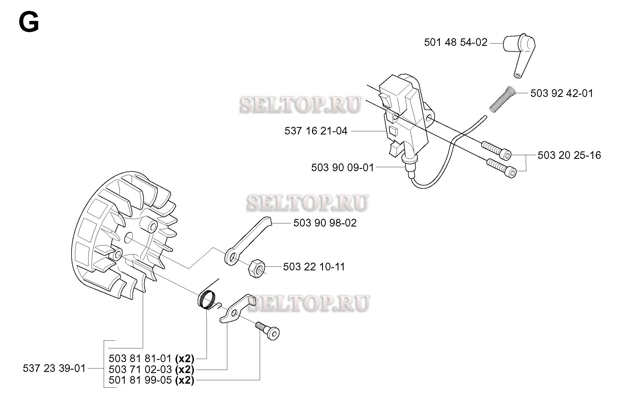 Зажигание для бензопилы Husqvarna 338 XPT CALIFORNIA (с 2006-01), взрыв-схема: