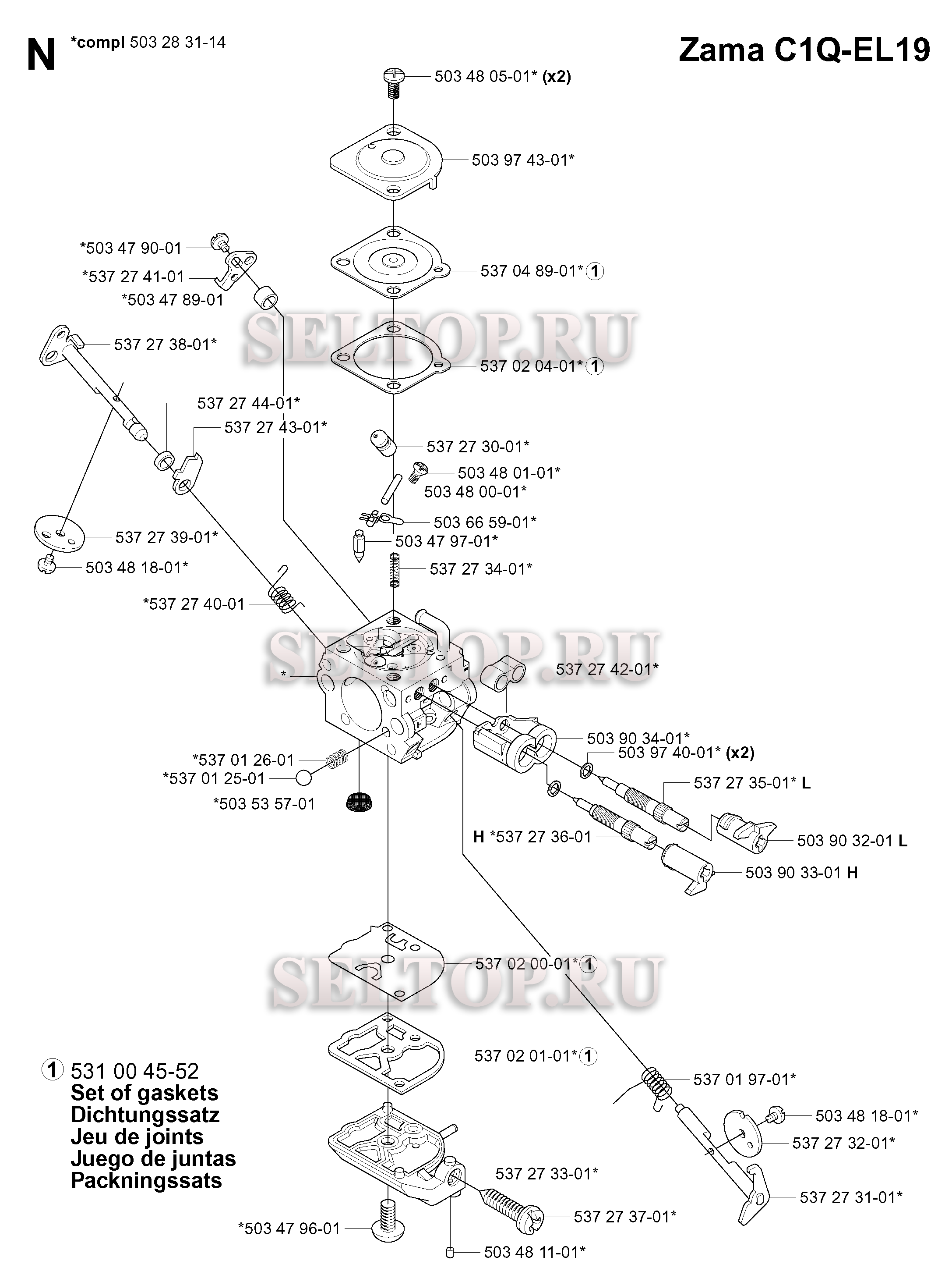 Запчасти карбюратора для бензопилы Husqvarna 338 XPT (с 2003-11), взрыв-схема: