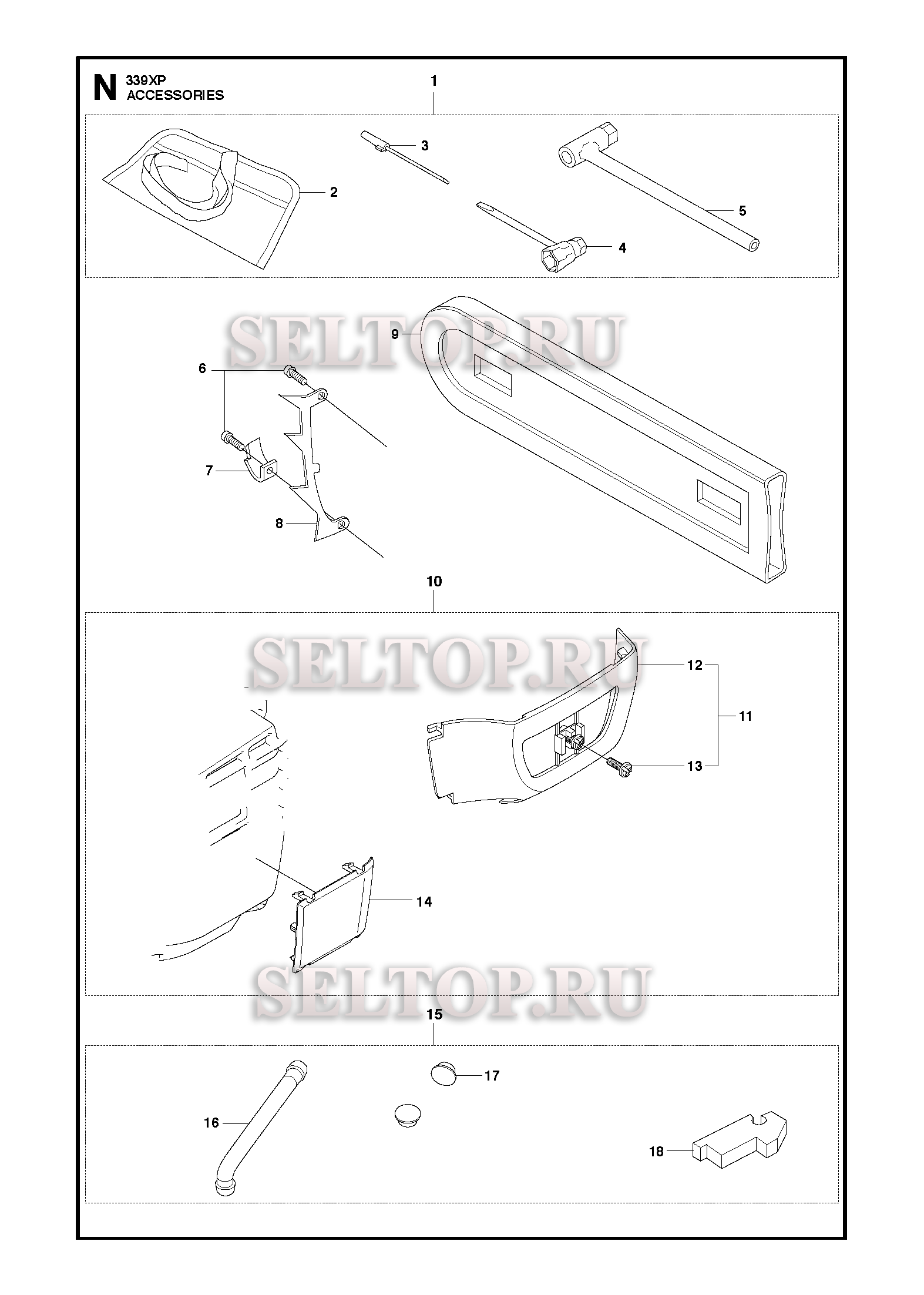 Аксессуары для бензопилы Husqvarna 339 XP (с 2010-02), взрыв-схема:
