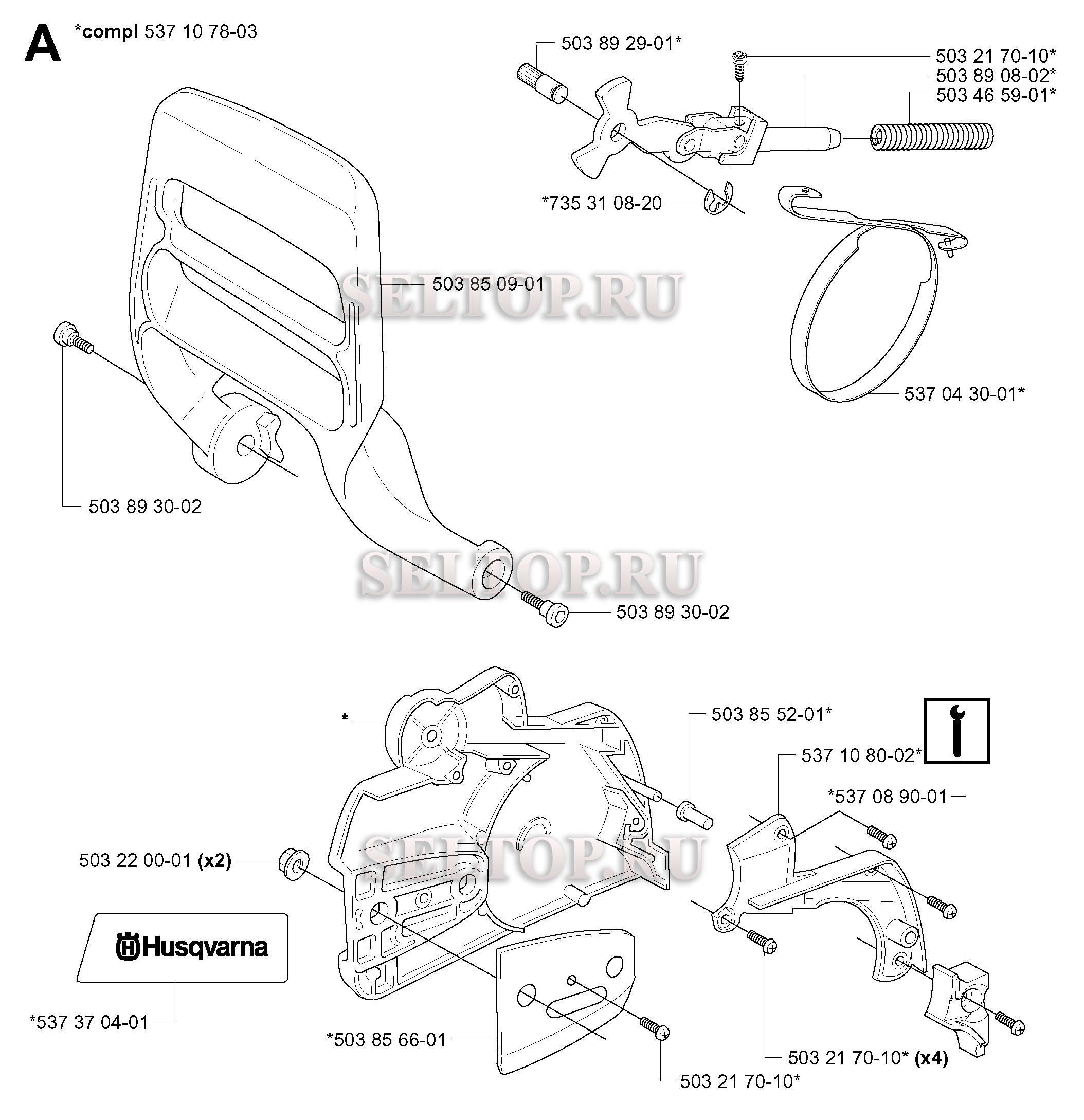 Тормоз цепи для бензопилы Husqvarna 340 E (с 2005-05), взрыв-схема: