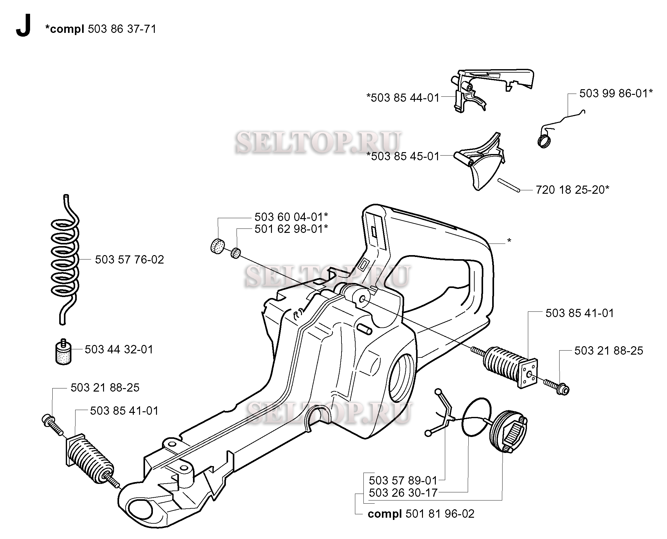 Топливный бак для бензопилы Husqvarna 340 (с 2001-09), взрыв-схема:
