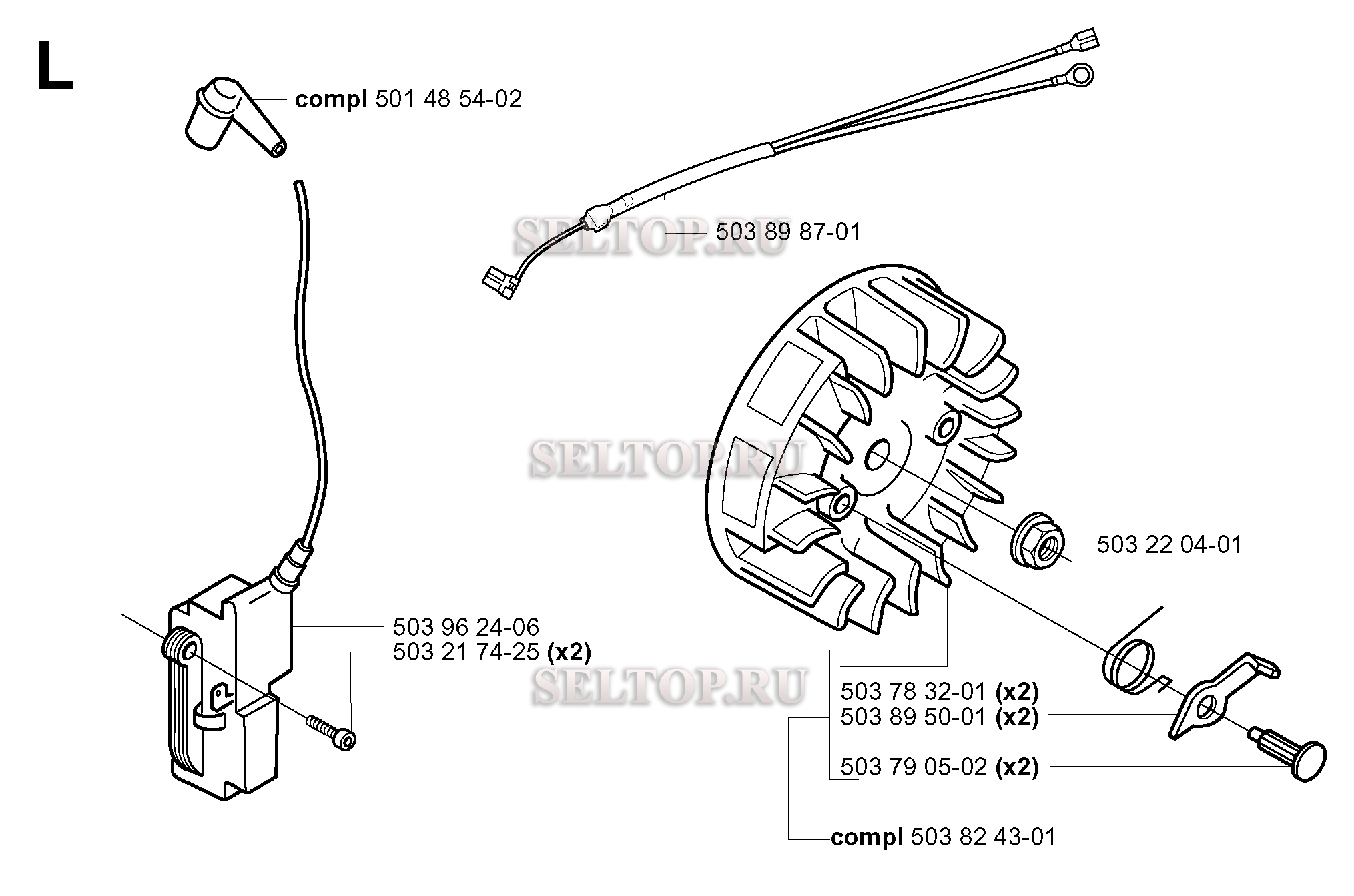 Зажигание для бензопилы Husqvarna 340 (с 2001-09), взрыв-схема: