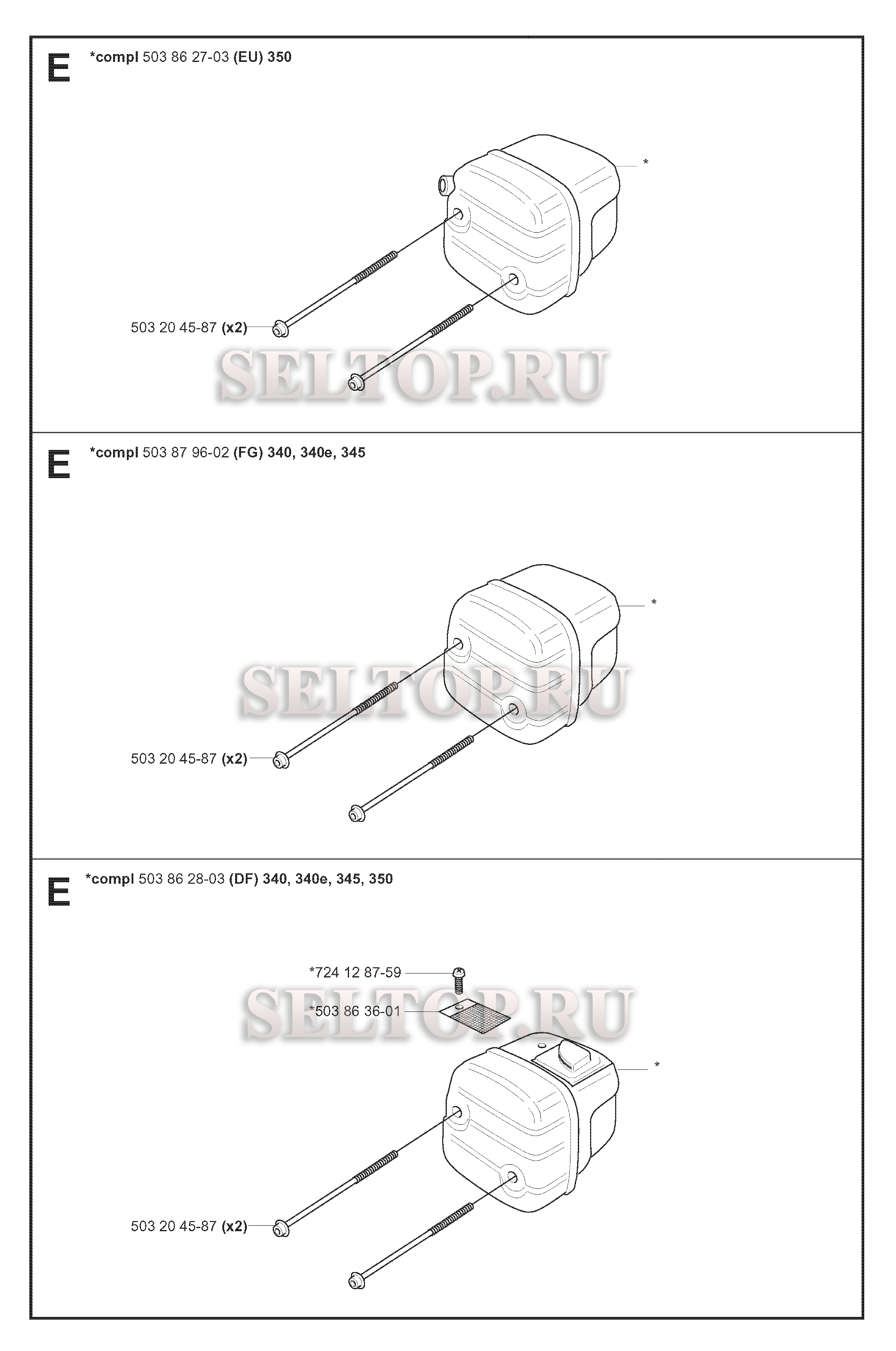 Глушитель для бензопилы Husqvarna 340 (с 2007-01), взрыв-схема: