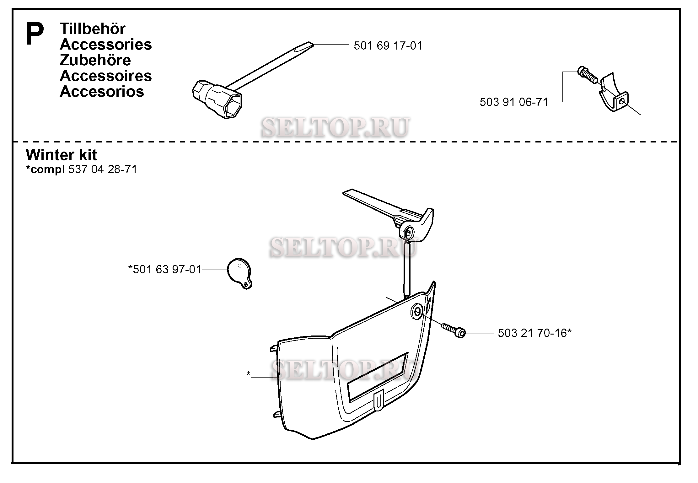 Аксессуары для бензопилы Husqvarna 345 EPA (с 2001-09), взрыв-схема: