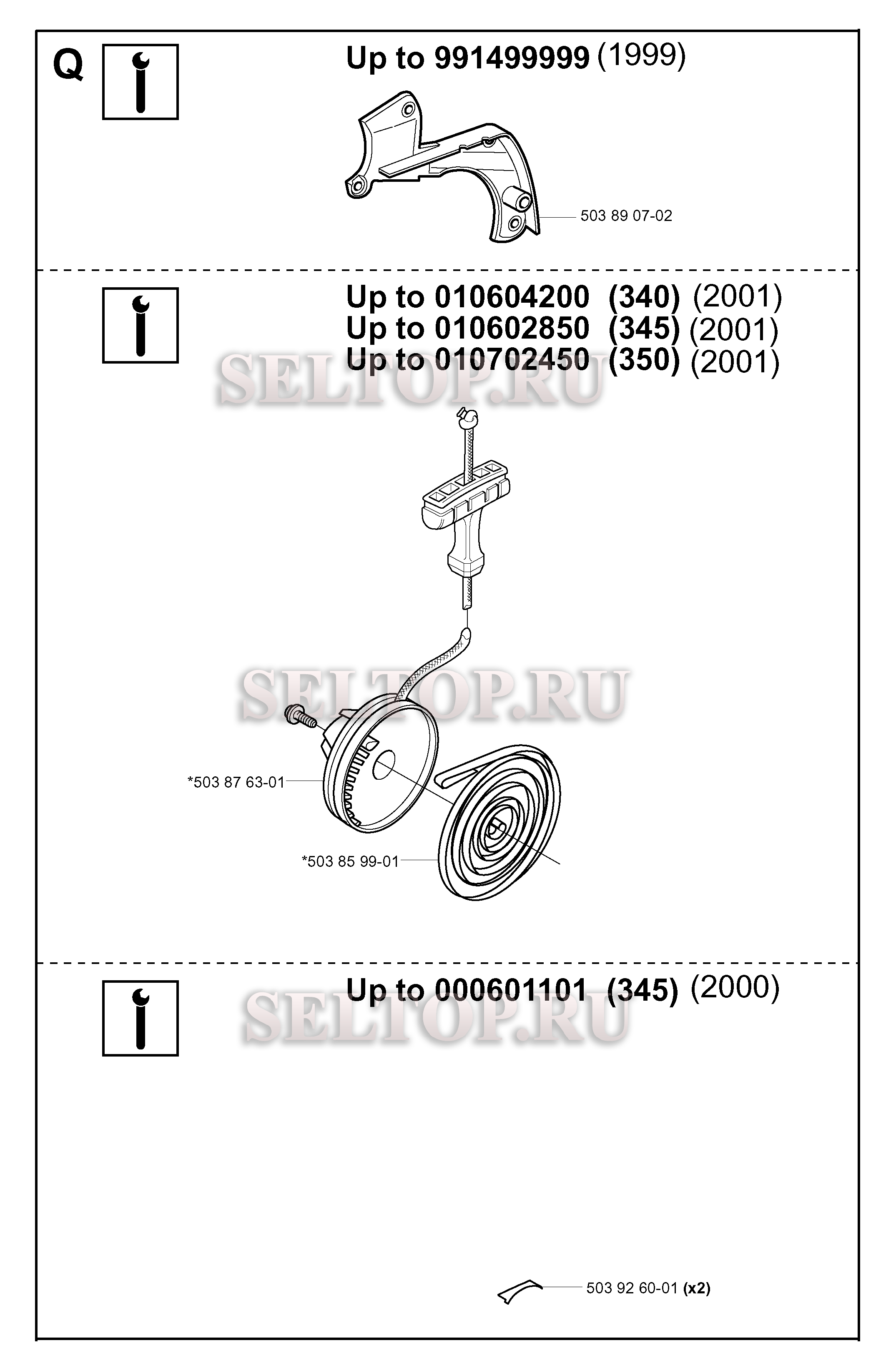 Комплект улучшения для бензопилы Husqvarna 345 EPA (с 2001-09), взрыв-схема: