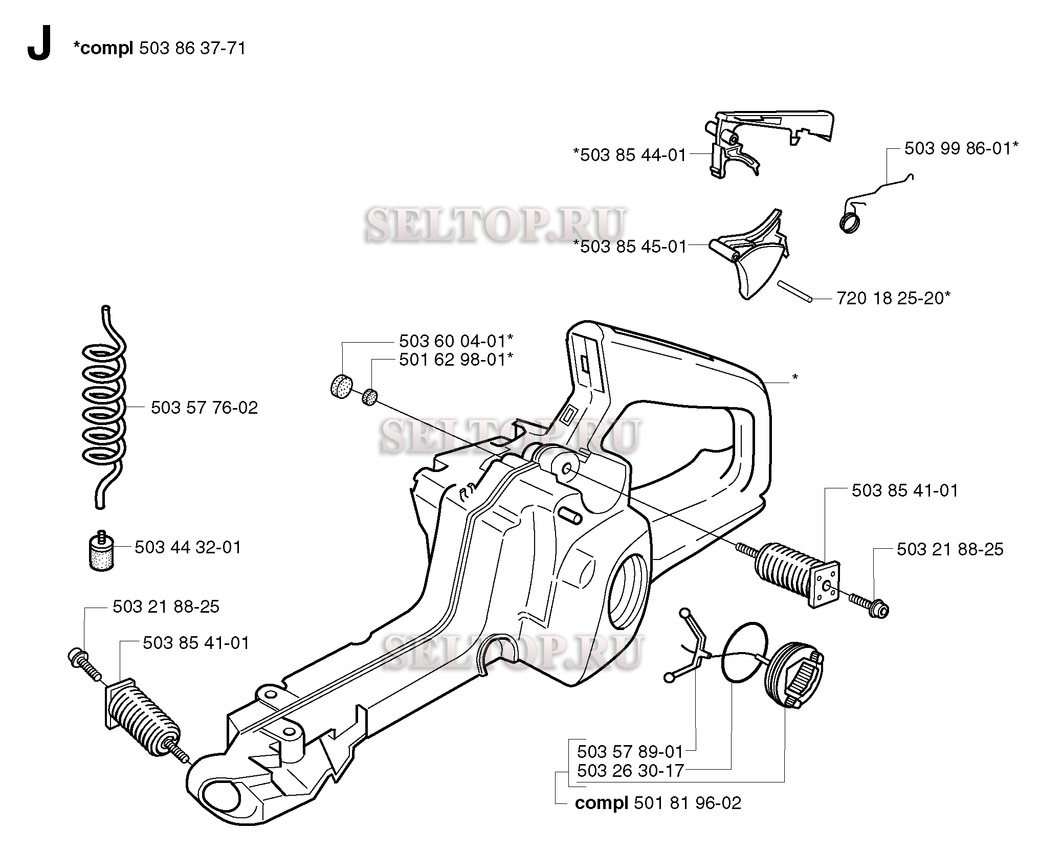 Топливный бак для бензопилы Husqvarna 345 (с 2003-01), взрыв-схема: