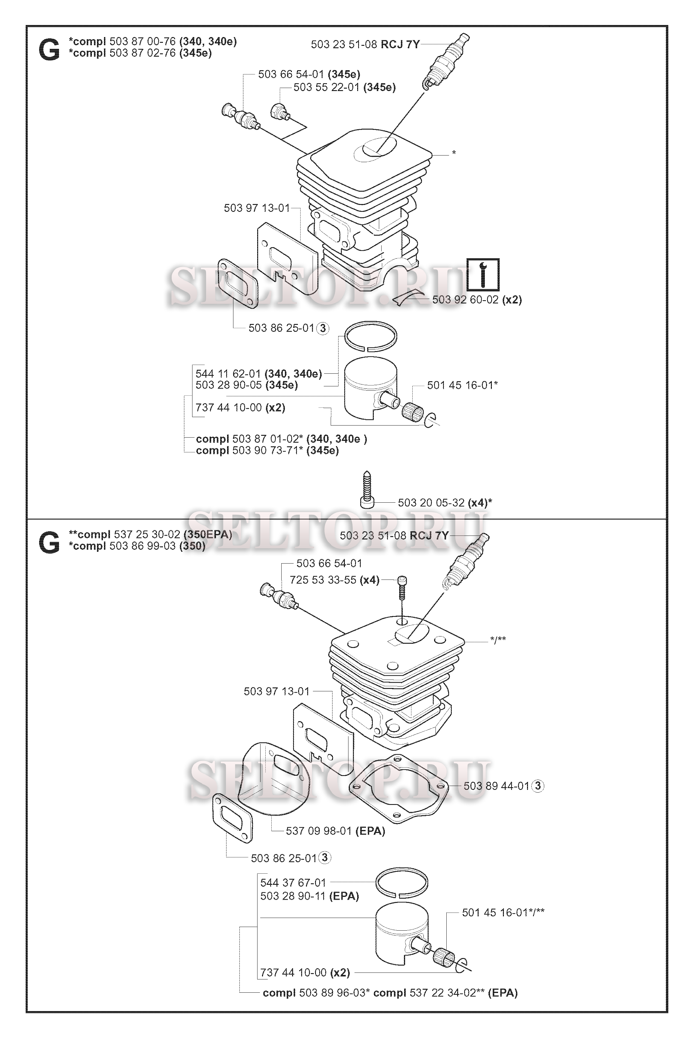 Поршень, цилиндр для бензопилы Husqvarna 345 (с 2007-01)