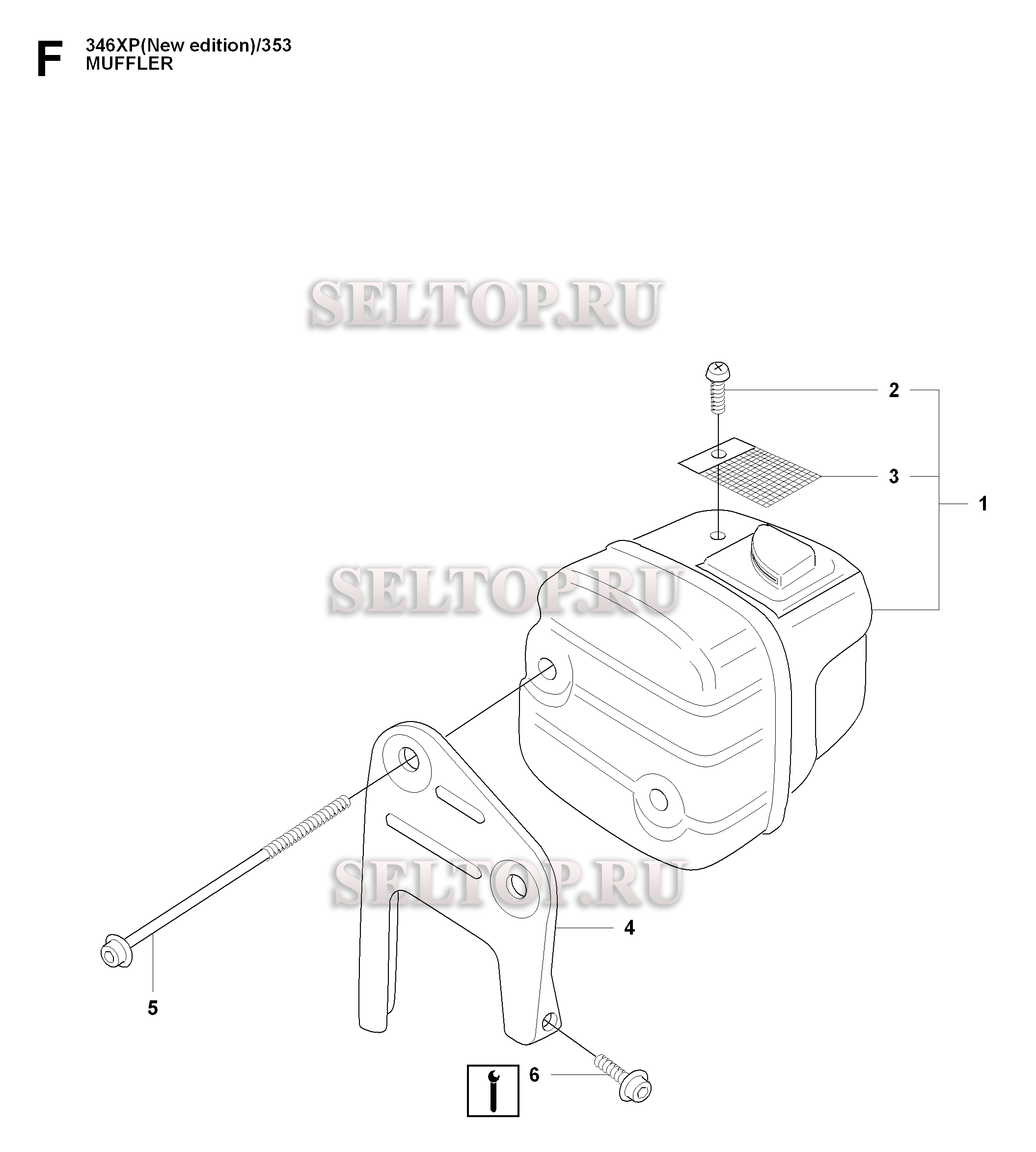 Глушитель для бензопилы Husqvarna 346 XP NEW EDITION (с 2009-02), взрыв-схема: