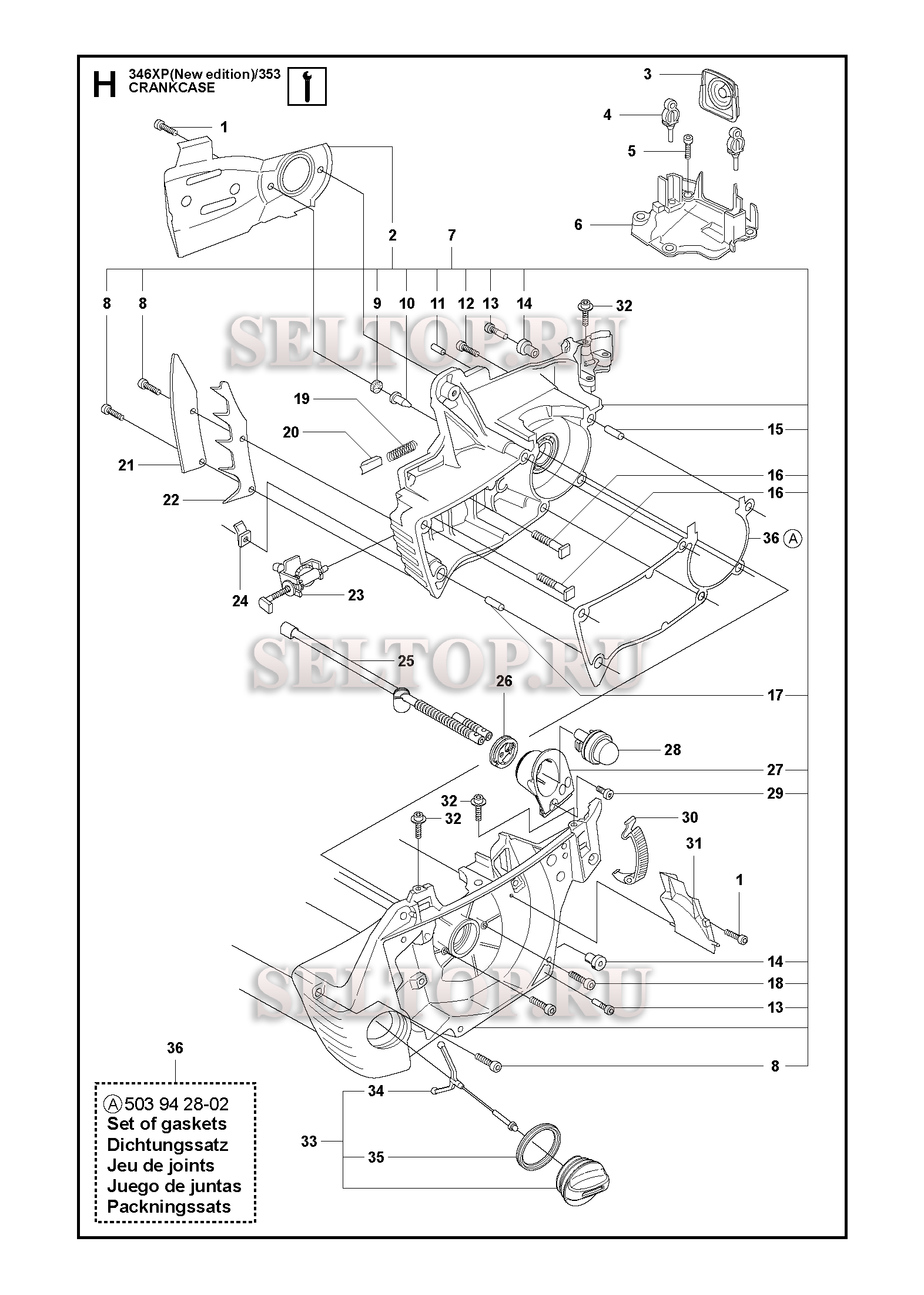 Картер для бензопилы Husqvarna 346 XP NEW EDITION (с 2009-02), взрыв-схема: