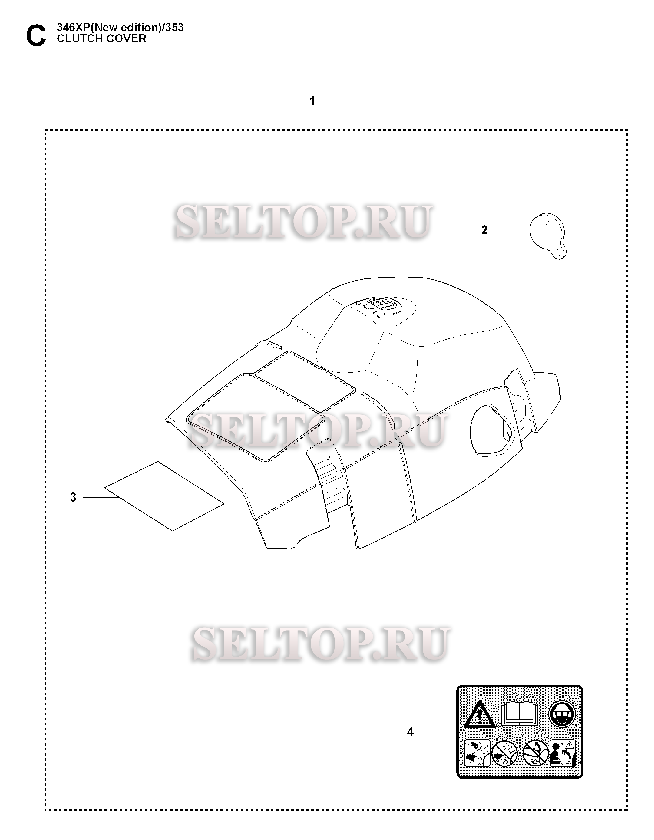 Крышка цилиндра для бензопилы Husqvarna 346 XP NEW EDITION (с 2009-02), взрыв-схема: