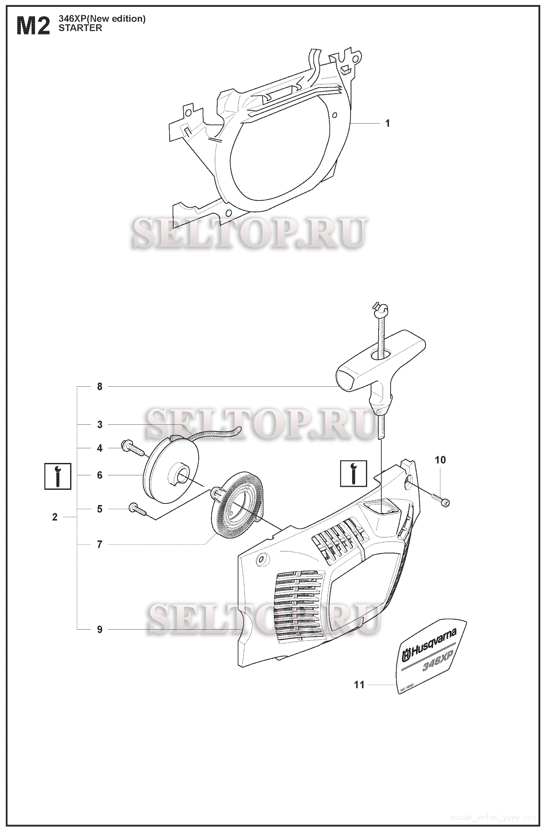Стартер для бензопилы Husqvarna 346 XP NEW EDITION (с 2009-02), взрыв-схема: