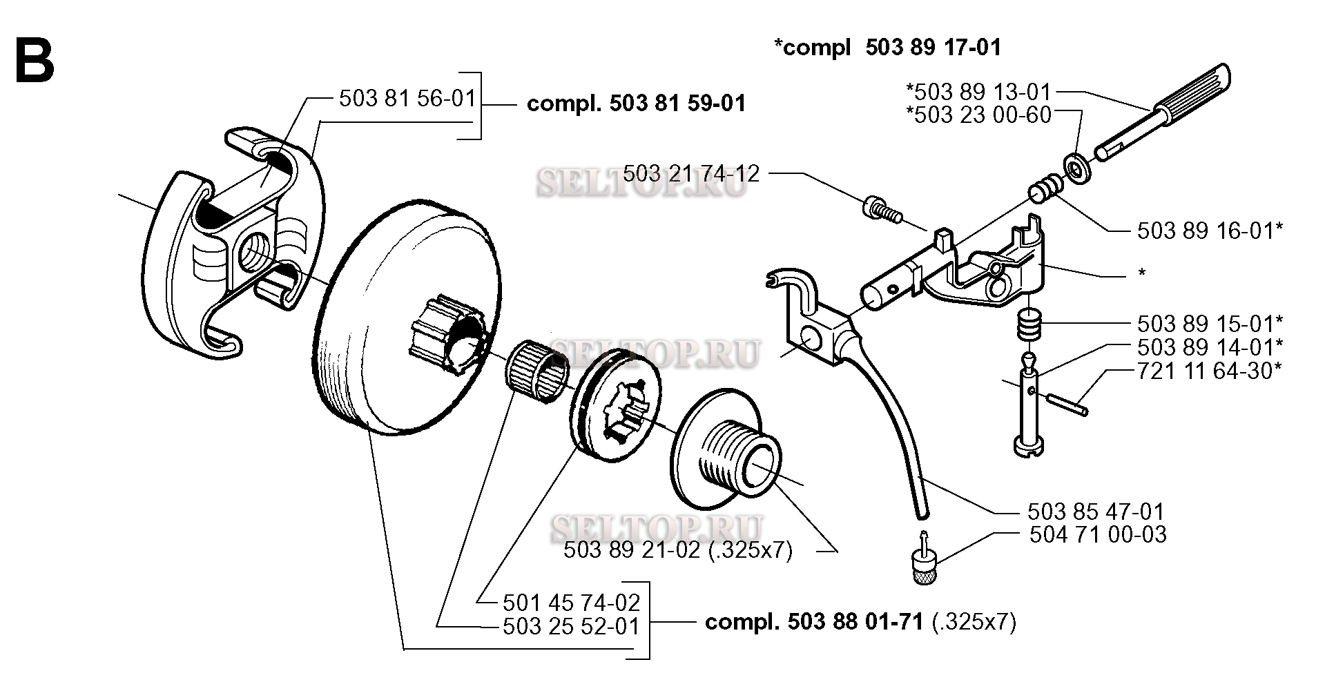 Сцепление, масляный насос для бензопилы Husqvarna 346 XP (с 1999-03), взрыв-схема: