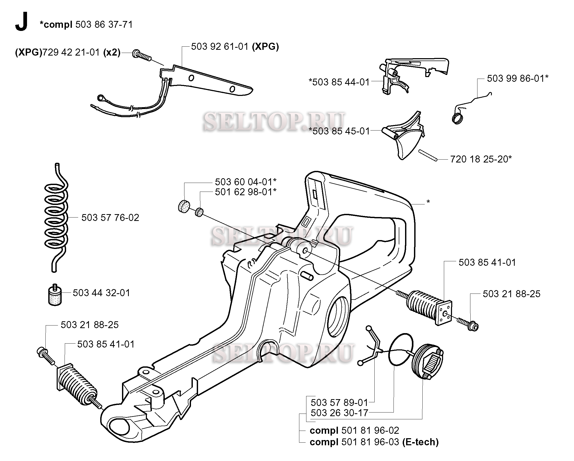 Топливный бак для бензопилы Husqvarna 346 XP (с 2001-06), взрыв-схема:
