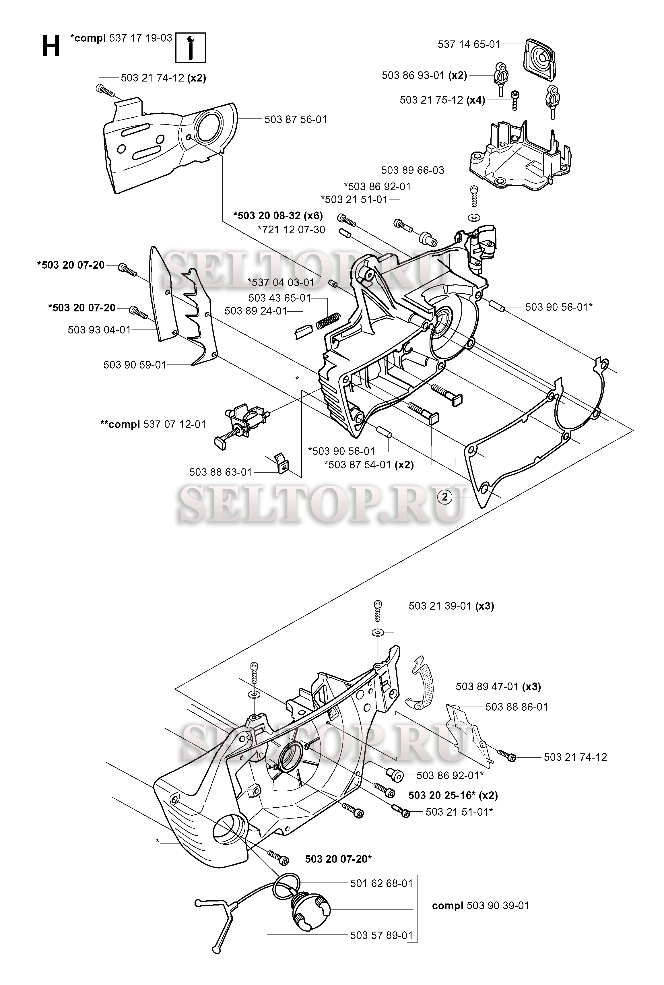 Картер для бензопилы Husqvarna 346 XP (с 2003-06), взрыв-схема:
