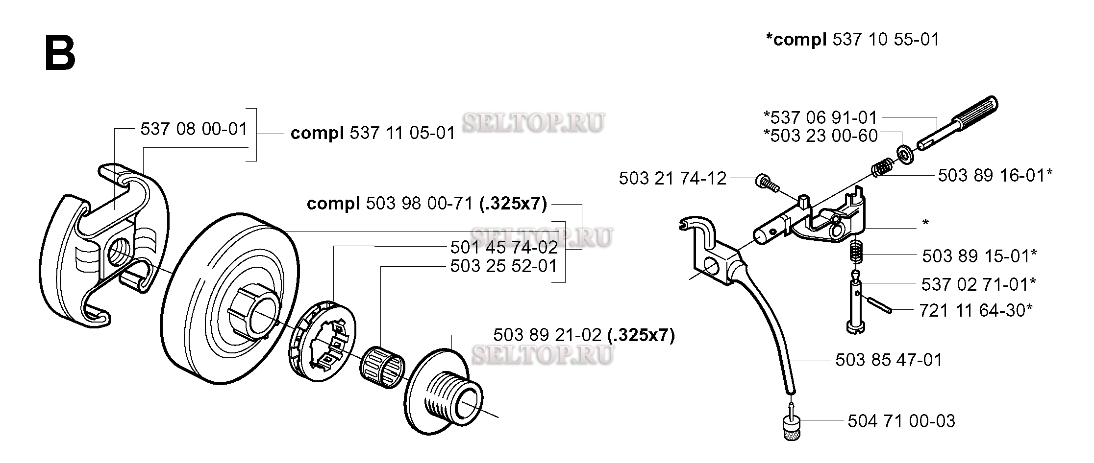 Сцепление, масляный насос для бензопилы Husqvarna 346 XP (с 2003-06)
