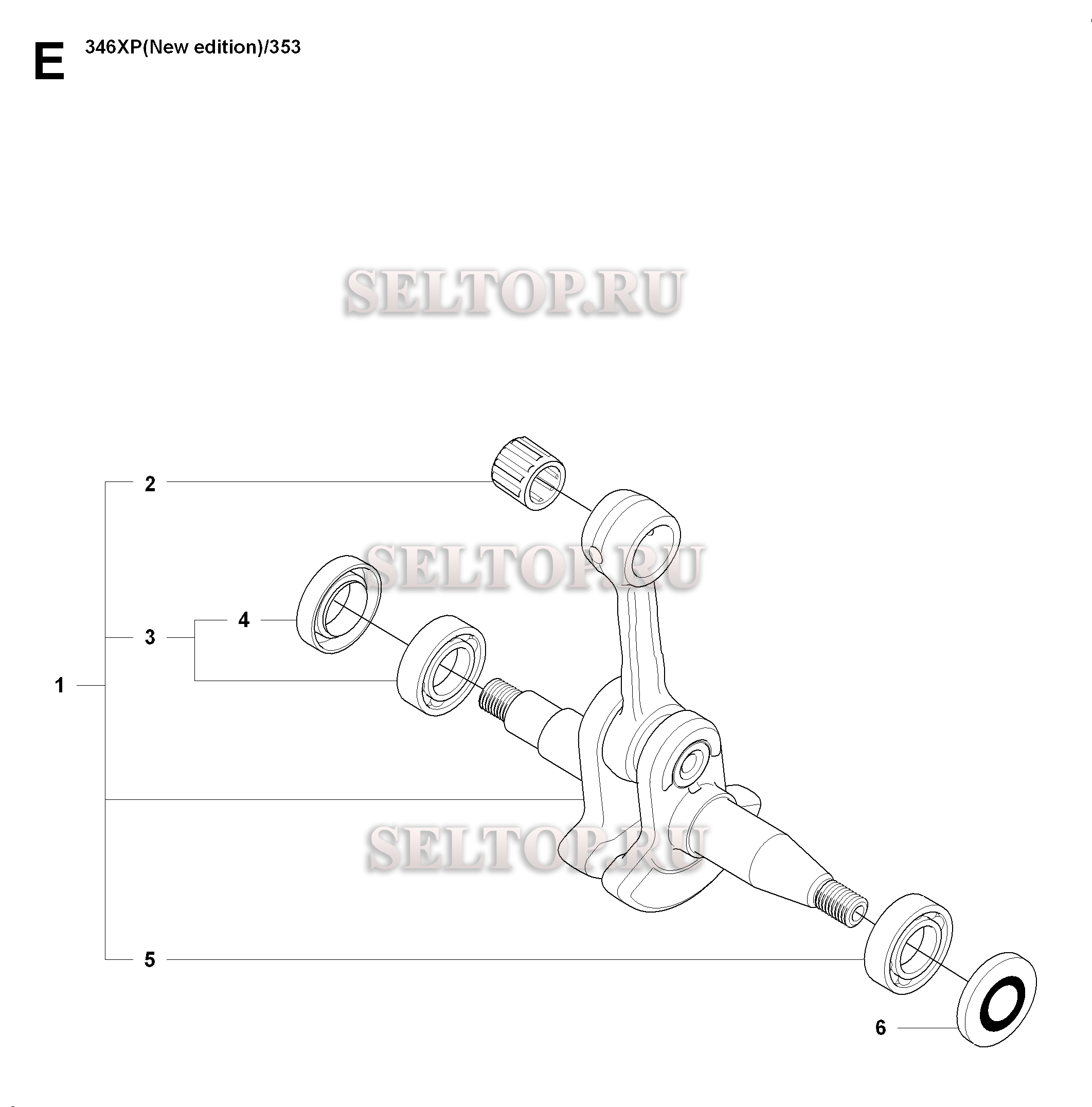 Коленвал для бензопилы Husqvarna 346 XP (с 2007-04), взрыв-схема: