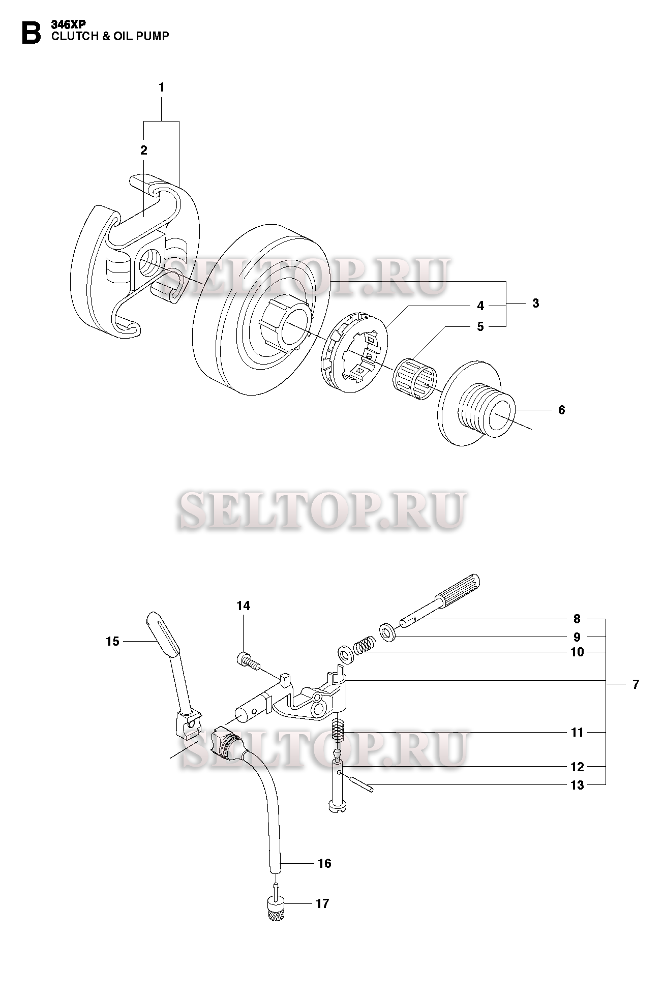 Сцепление, масляный насос для бензопилы Husqvarna 346 XP (с 2015-07)