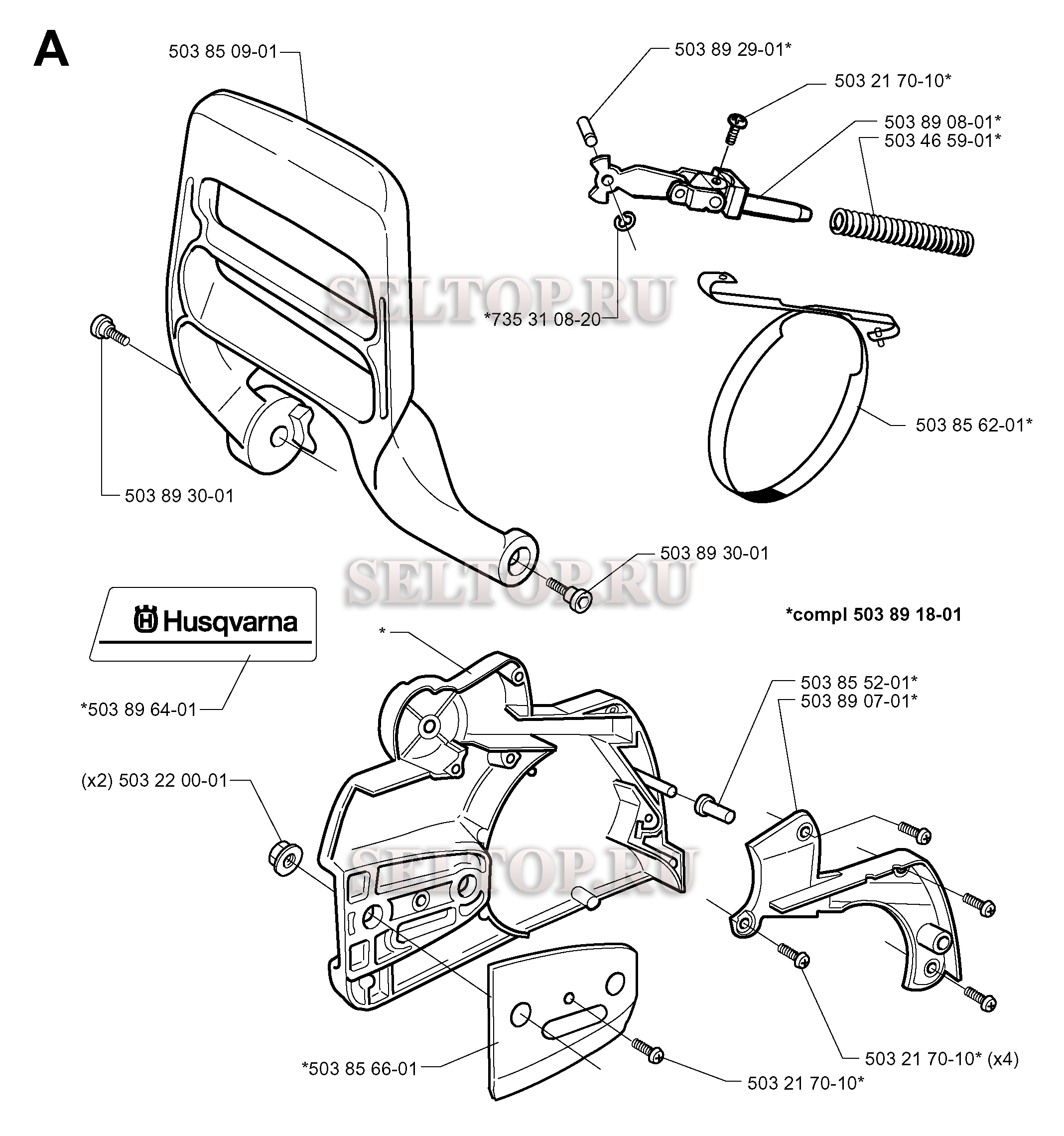 Тормоз цепи для бензопилы Husqvarna 350 (с 1998-02), взрыв-схема: