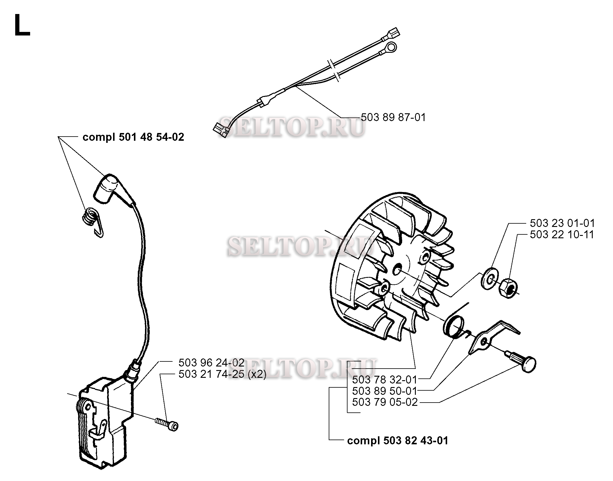 Зажигание для бензопилы Husqvarna 350 (с 1998-02), взрыв-схема: