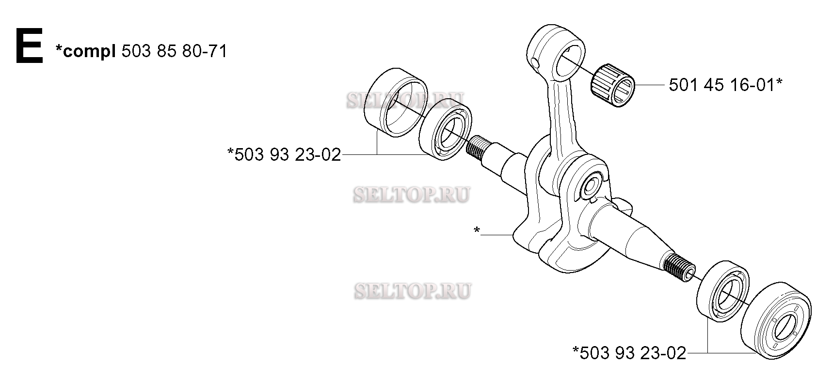 Коленвал для бензопилы Husqvarna 350 (с 2004-03), взрыв-схема: