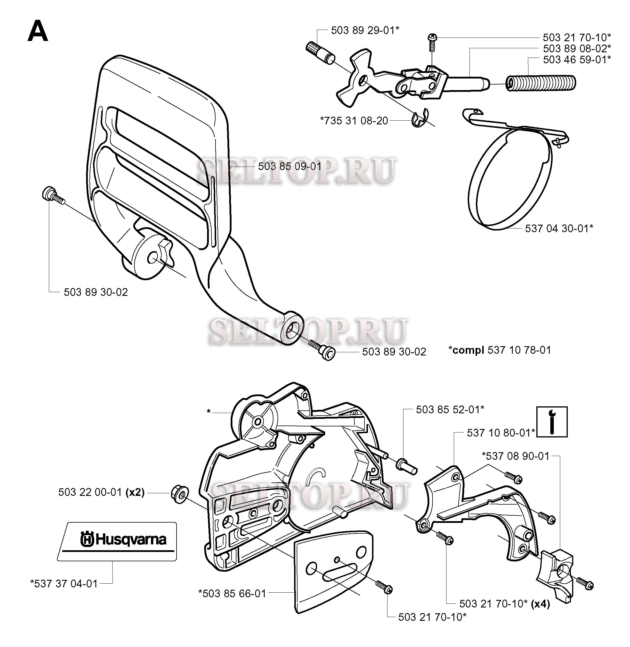 Тормоз цепи для бензопилы Husqvarna 350 (с 2004-03), взрыв-схема: