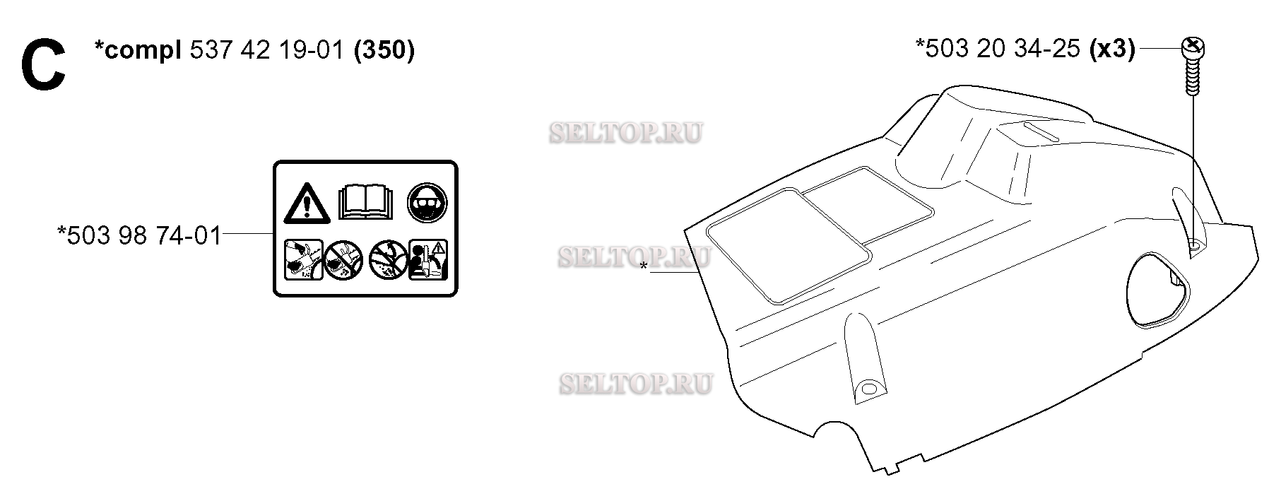 Кожух для бензопилы Husqvarna 350 (с 2005-05), взрыв-схема: