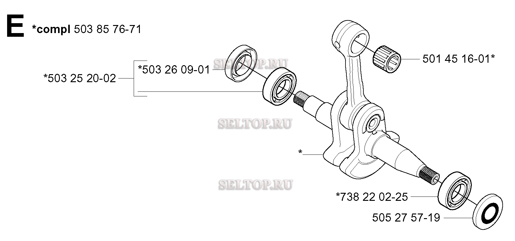 Коленвал для бензопилы Husqvarna 351 (с 2001-06), взрыв-схема: