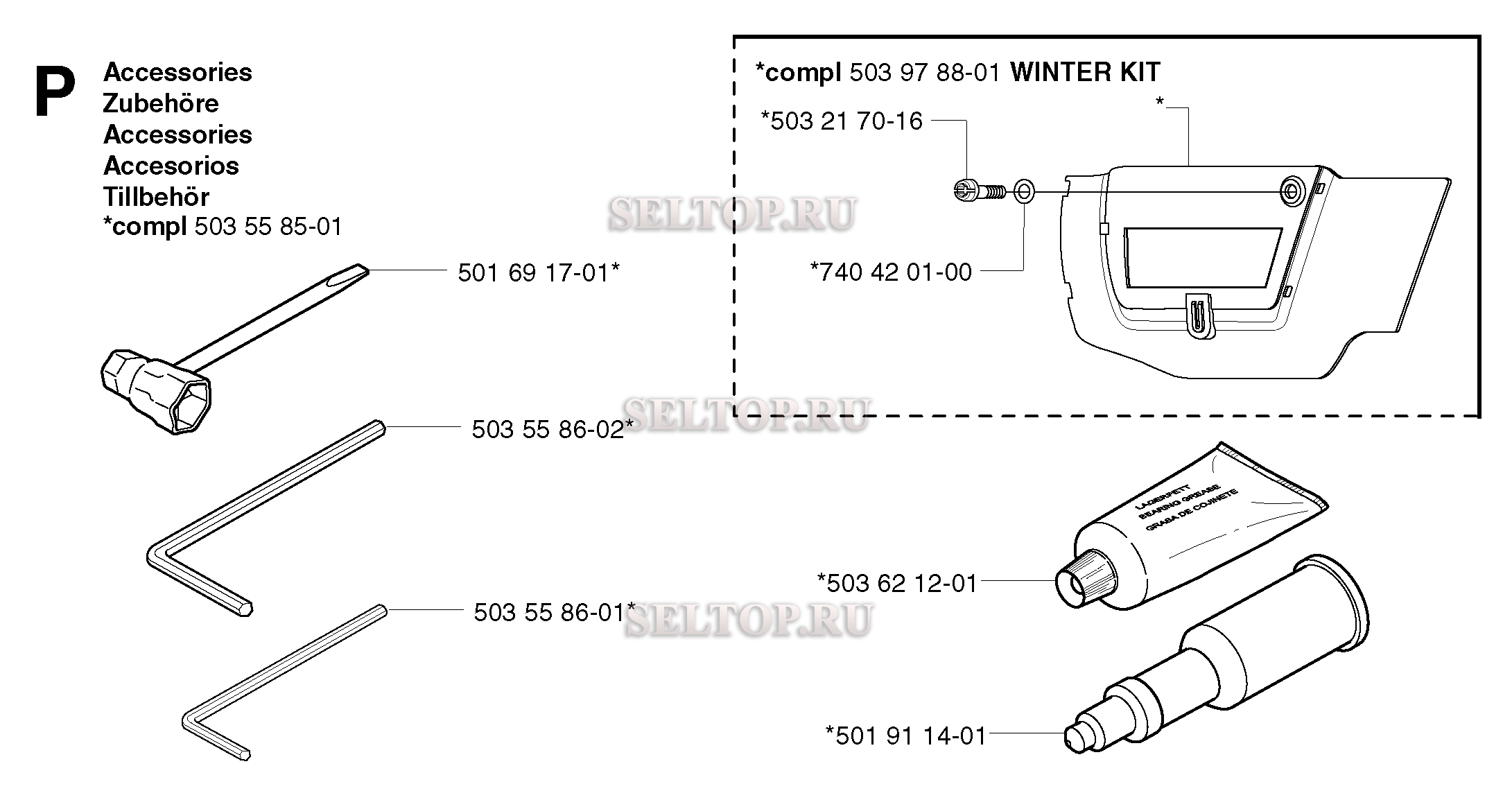 Аксессуары для бензопилы Husqvarna 357 XP EPA I (с 2003-04), взрыв-схема: