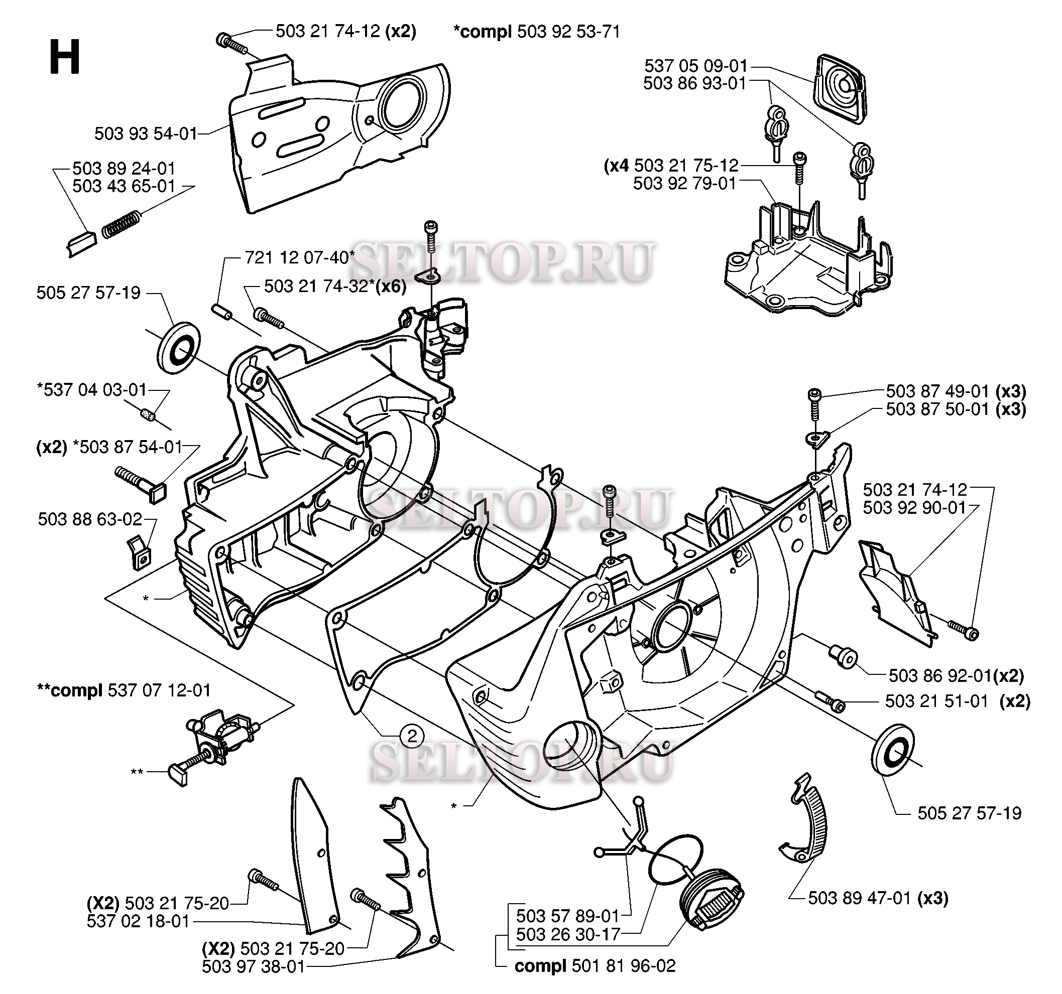 Картер для бензопилы Husqvarna 357 XP EPA (с 2001-01), взрыв-схема: