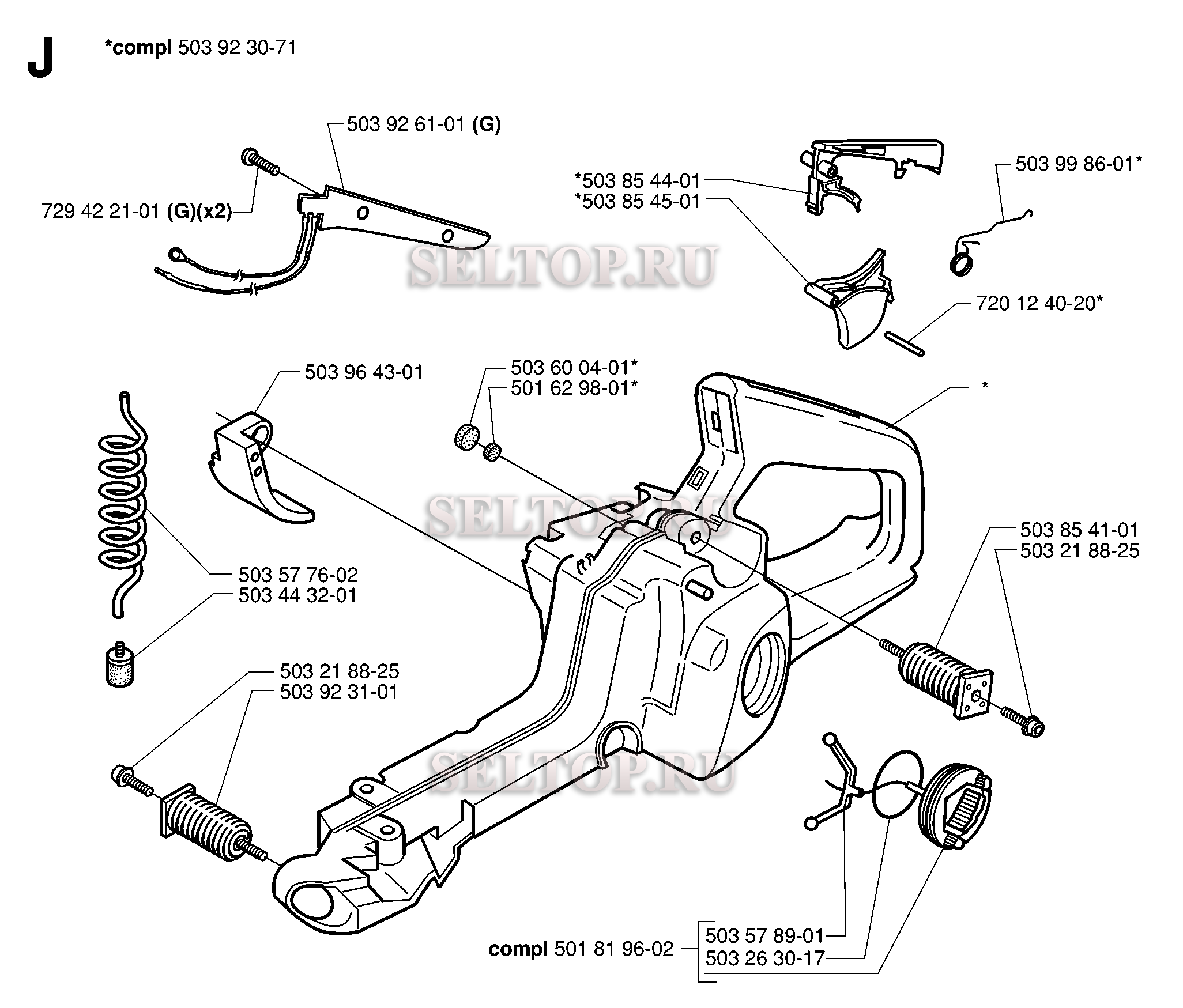 Топливный бак для бензопилы Husqvarna 357 XP EPA (с 2001-01), взрыв-схема: