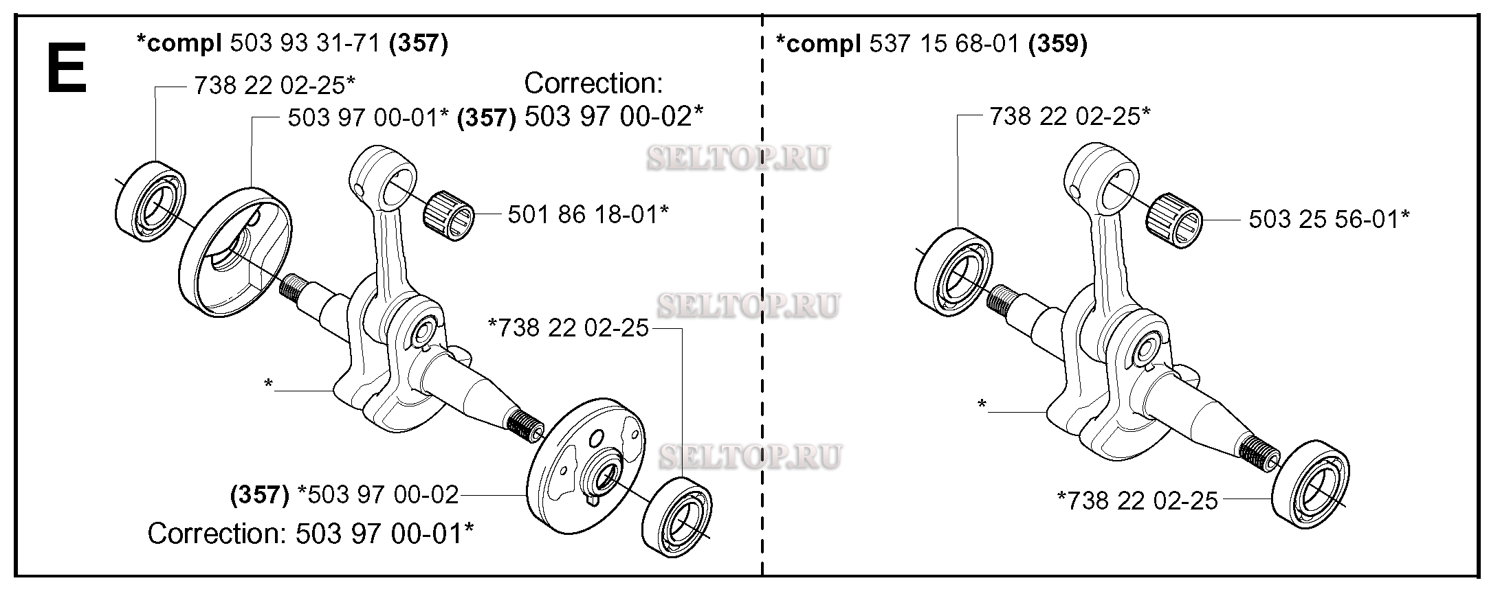 Коленвал для бензопилы Husqvarna 357 XP EPA (с 2001-10), взрыв-схема: