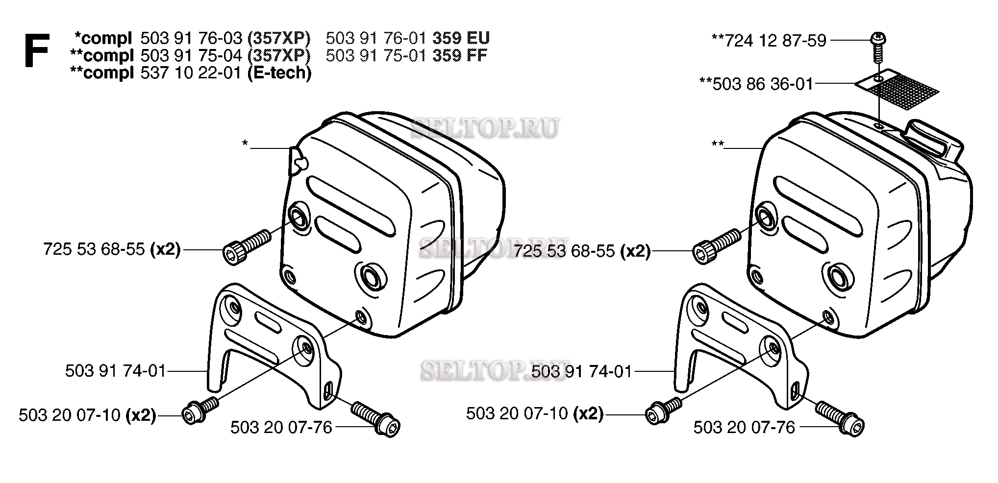 Глушитель для бензопилы Husqvarna 357 XP EPA (с 2006-02)